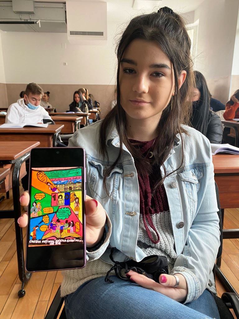 Concursul a atras circa 100 de participanți, iar colega noastră a trimis în concurs o lucrare de tip poster, într-o stilistică de benzi desenate, dedicată acestei aniversări.