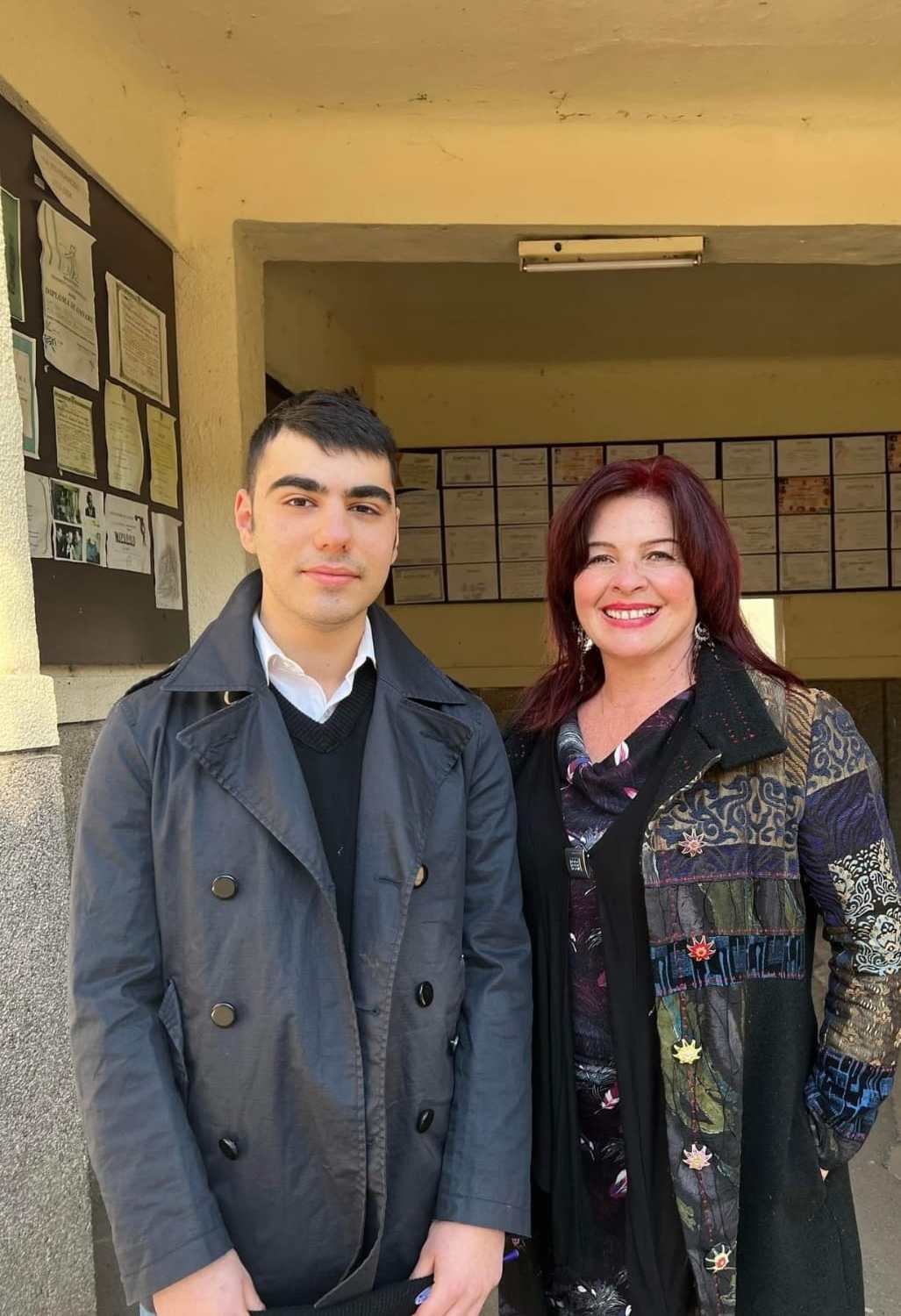 Foto: Adrian Roată alături de dna Silvia Șora, profesor coordonator. Sursă foto: arhiva personală