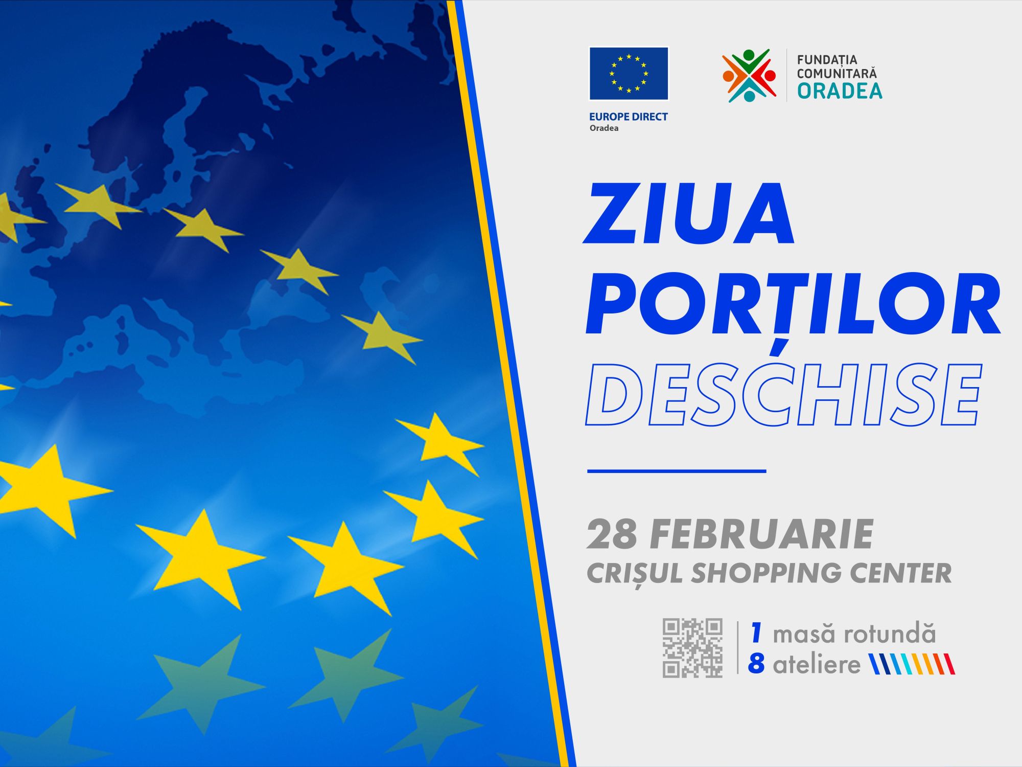 Fundația Comunitară Oradea vă invită la Ziua Porților Deschise, luni, 28 februarie, în cadrul programului Europe Direct Oradea. În cadrul evenimentului vor fi susținute ateliere destinate tinerilor orădeni.