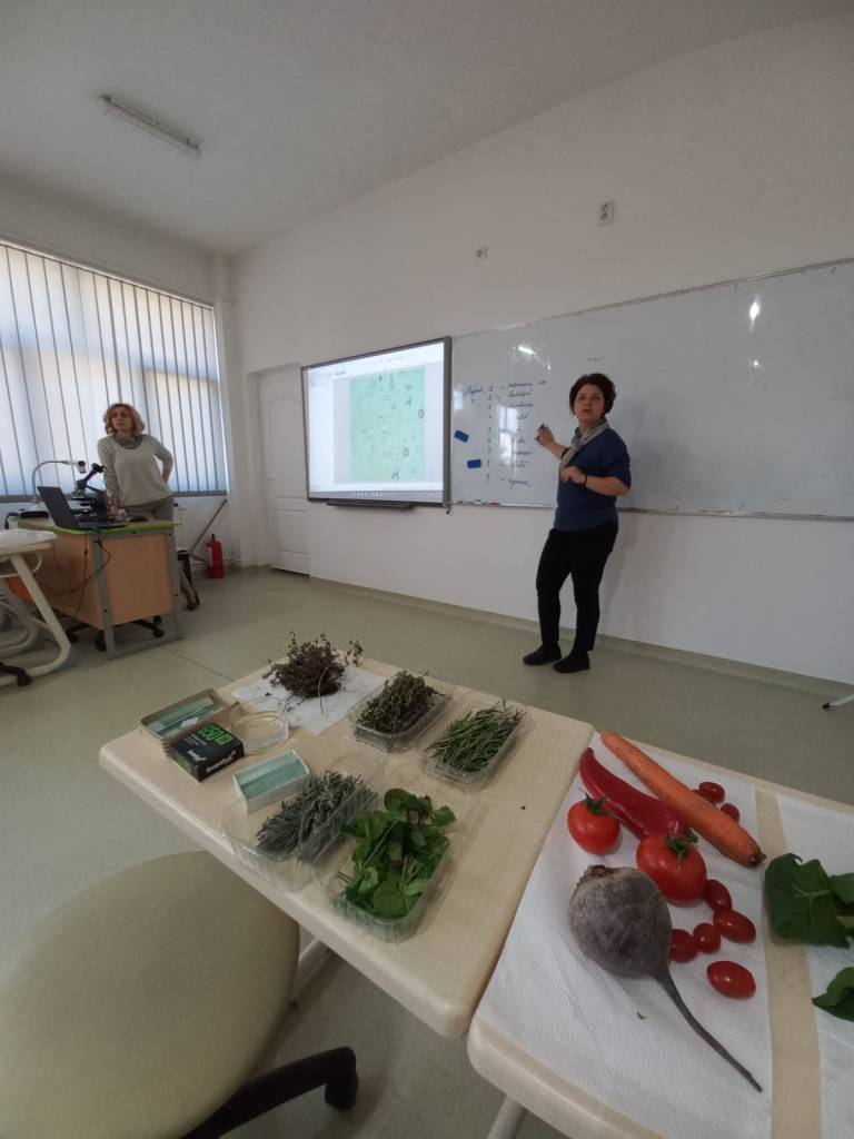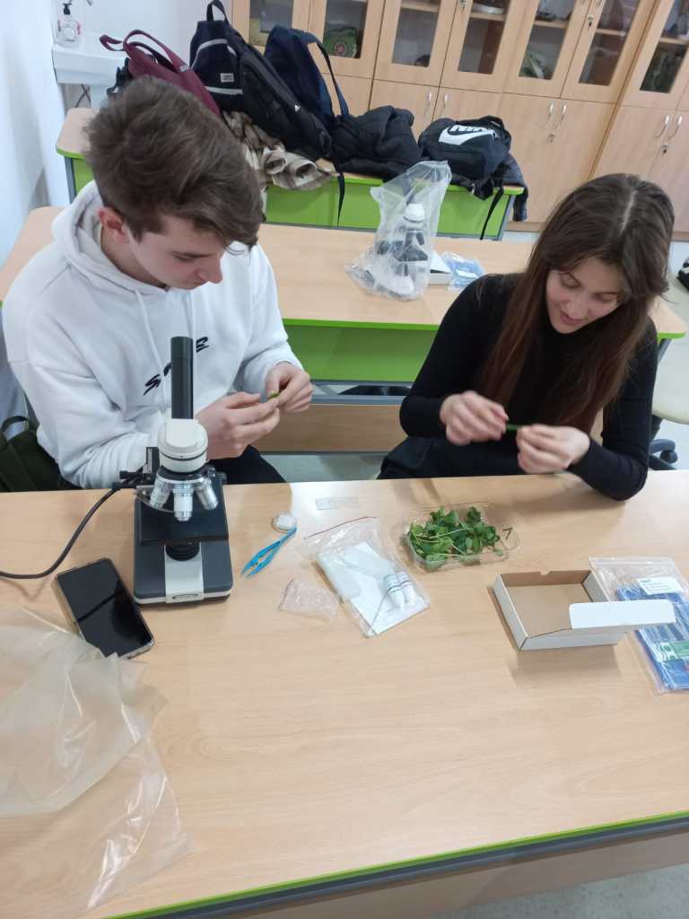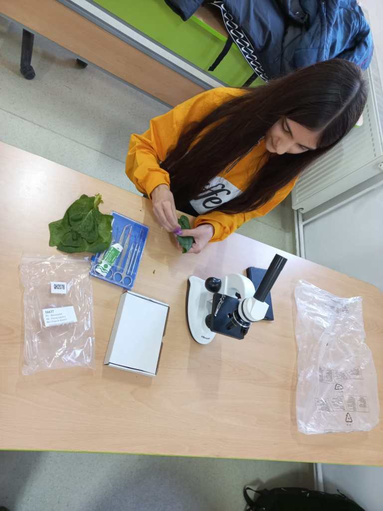 Elevii au realizat preparate microscopice cu secțiuni fine prin frunze de spanac – Spinacia oleracea, varză – Brassica oleracea var. Capitata, mușcată – Pelargonium peltatum. Preparatele microscopice vor fi examinate microscopic în vederea evidențierii cloroplastelor cu pigmenți clorofilieni.