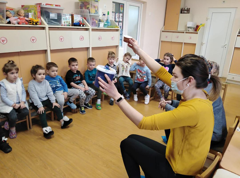 Inițiativei noastre s-au alăturat și doamnele voluntare din cadrul Asociației Grund Community, care i-au învățat pe copii, prin joc, cum se reciclează corect deșeurile, în funcție de culorile de pe fiecare recipient.