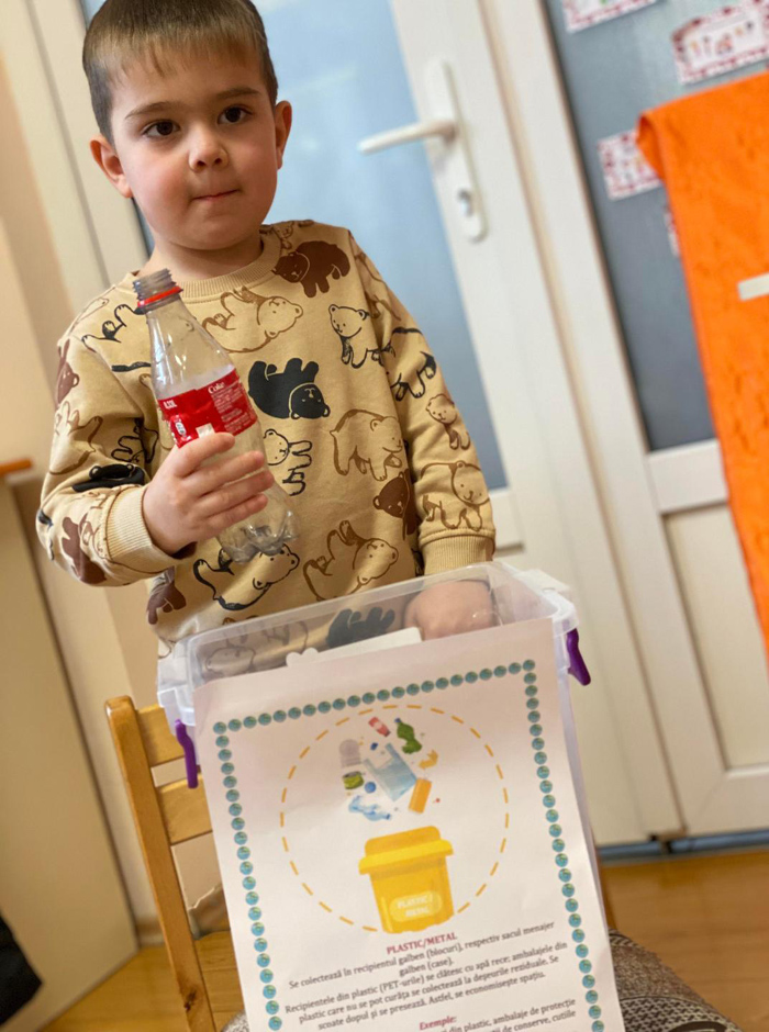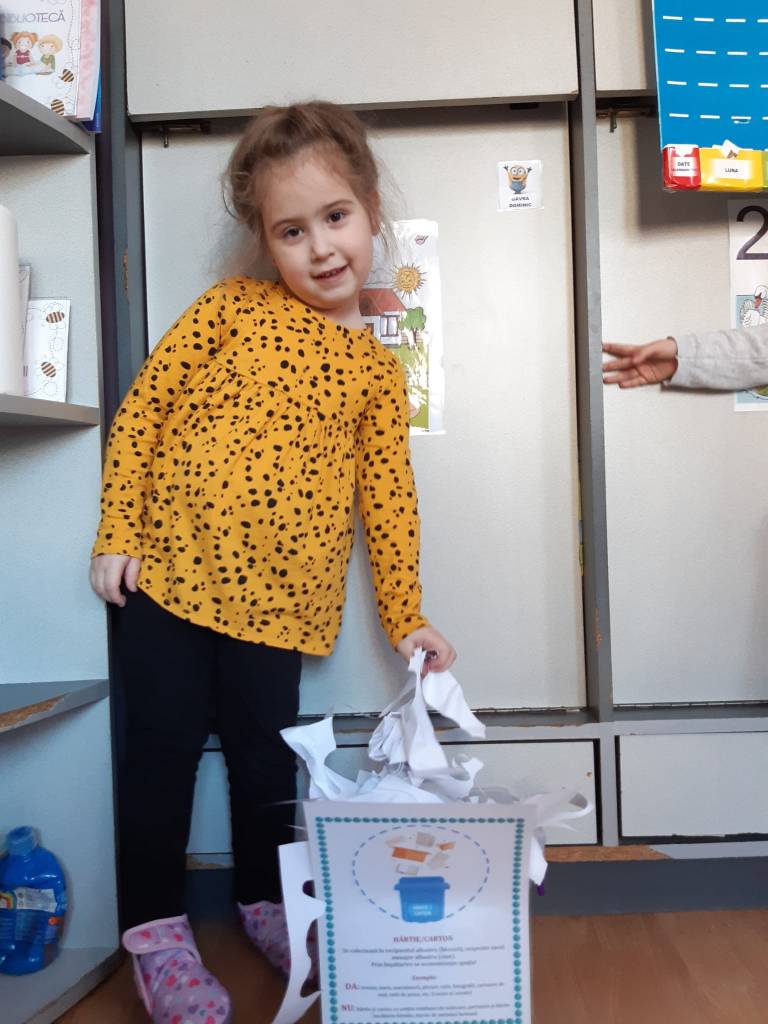 Proiectul a debutat cu desfășurarea unor activități de colectare selectivă, astfel în fiecare sală de grupă în recipiente decorate cu imagini sugestive copiii au colectat selectiv pe parcursul a cinci săptămâni. Copiii au fost învățați să colecteze selectiv deșeurile în cinci fracții, iar pentru desfășurarea acestor activități ne-am bazat pe sprijinul și susținerea familiilor tuturor preșcolarilor înscriși în grădinița noastră.