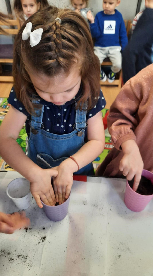 Apoi am desfășurat activități de informare despre grădinărit, de recunoaștere a uneltelor grădinarului, precum și de semănarea și plantare a seminţelor de verdețuri, plante aromate, flori, legume.