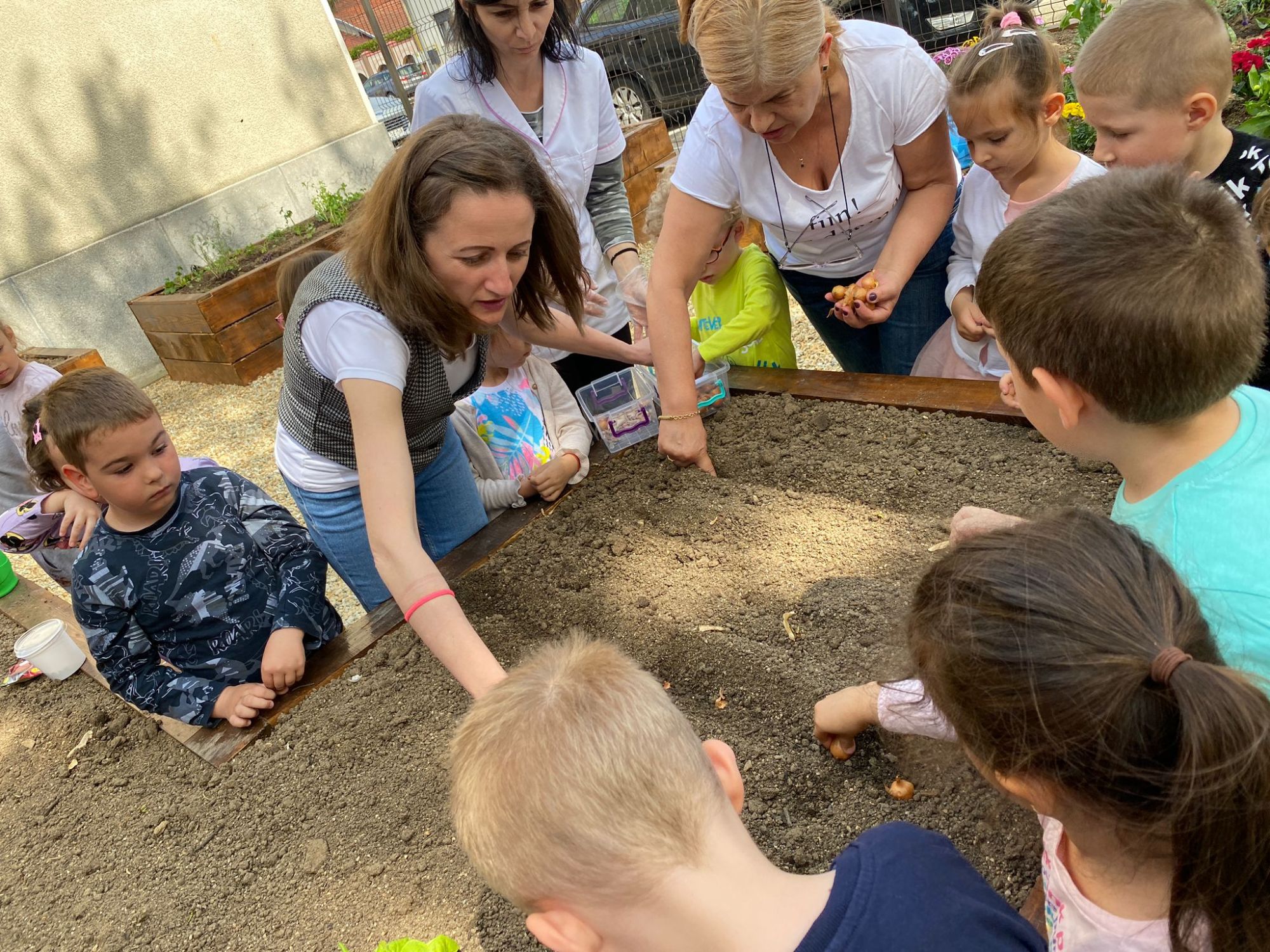 Rezultatul acestor activități a culminat cu amenajarea unei mini-grădini, în cadrul căreia copiii vor învăța și vor face numeroase descoperi: vor observa cum se dezvoltă o plantă, ce fel de insecte polenizează florile, ce fel de viețuitoare trăiesc în pământ, cum ne pregătim propriul îngrășământ natural (compost) pentru plante; astfel, am creat pentru copiii propriul teren de joacă și de împărtășire a experiențelor trăite.