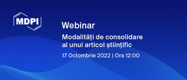 Universitatea din Oradea, în colaborare cu Multidisciplinary Digital Publishing Institute (MDPI), organizează, la 17 octombrie 2022, începând cu ora 12:00, webinarul cu tema Modalități de consolidare a unui articol științific.