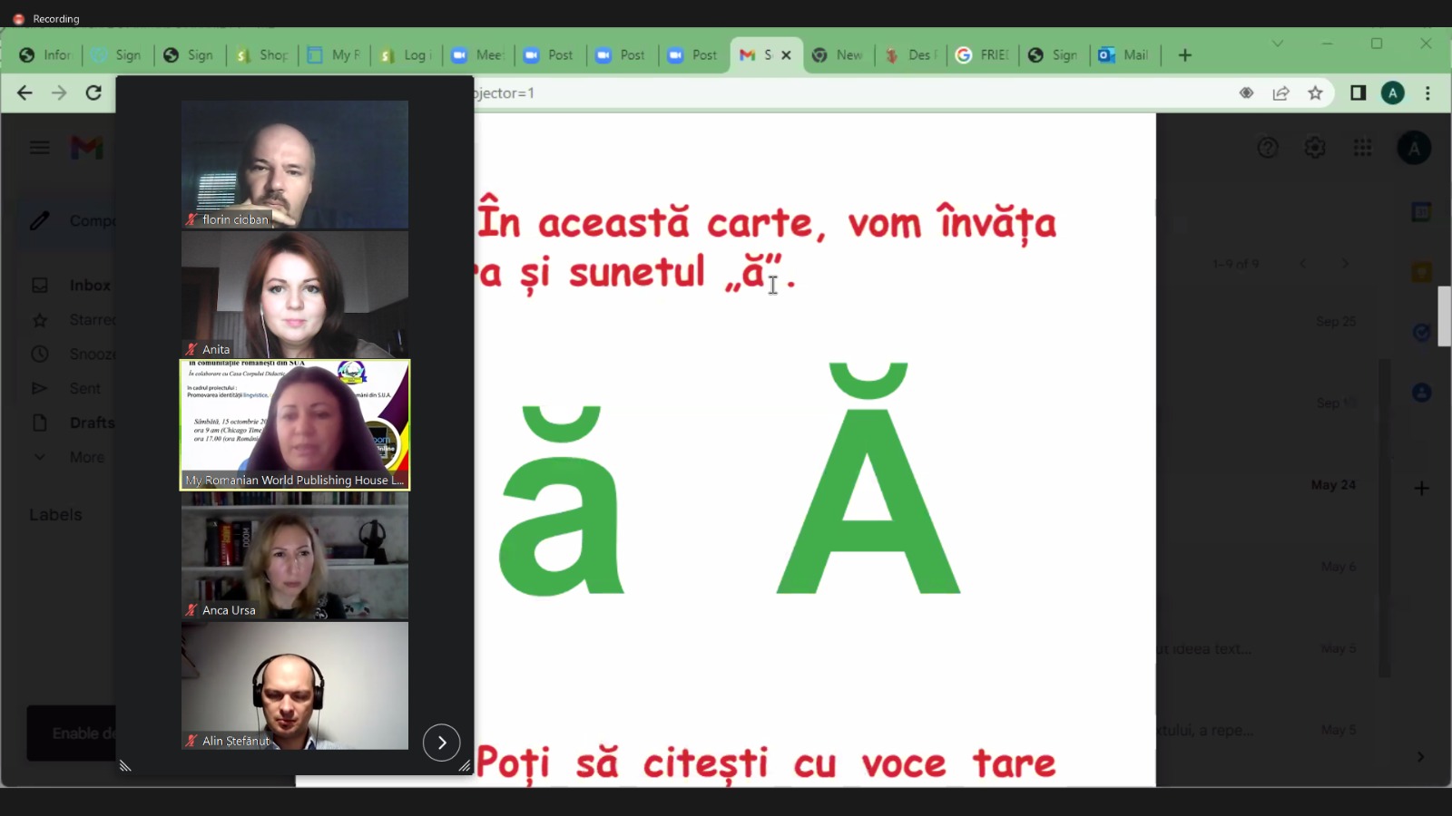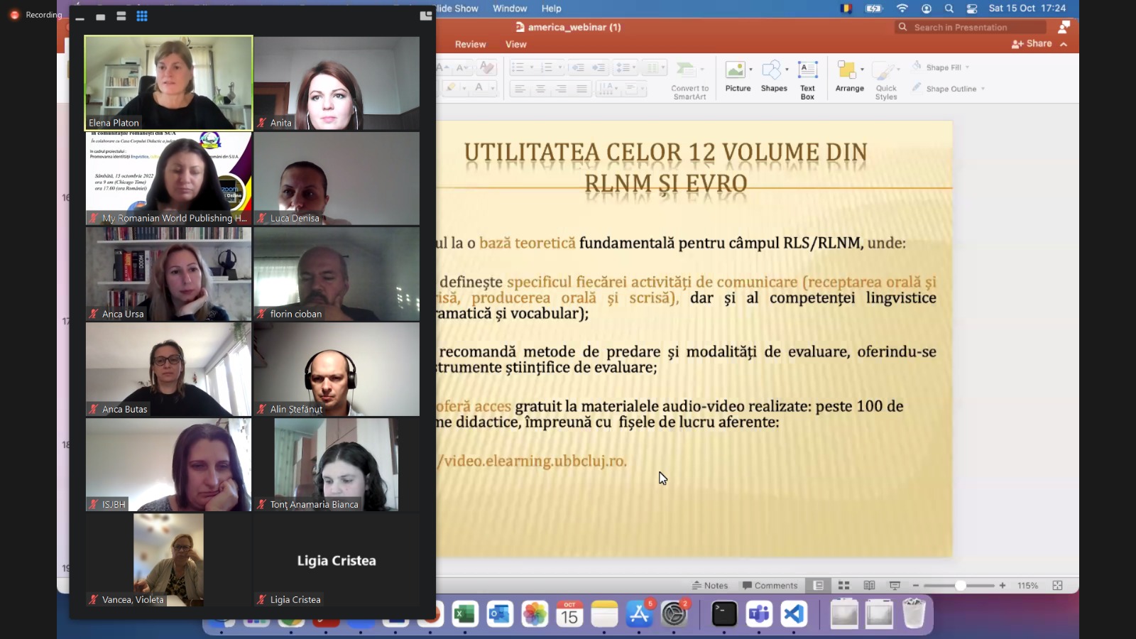 Au luat cuvântul conf. univ. dr. Elena Platon, Universitatea „Babeș – Bolyai” din Cluj-Napoca, lector univ. dr. Anca Ursa, șef de lucrări la Universitatea de Medicină și Farmacie „Iuliu Hațieganu” Cluj-Napoca, prof. univ. dr. habil Florin Cioban, lector de limba română la Universitatea „Eötvös Loránd” din Budapesta, prof Alina Vance, fondatoarea editurii My Romanian World Publishing House din Chicago, SUA, și reprezentanți ai Casei Corpului Didactic a județului Bihor, director, prof. dr. Alin Ștefănuț, și subsemnata, prof. metodist Anita Capota.
