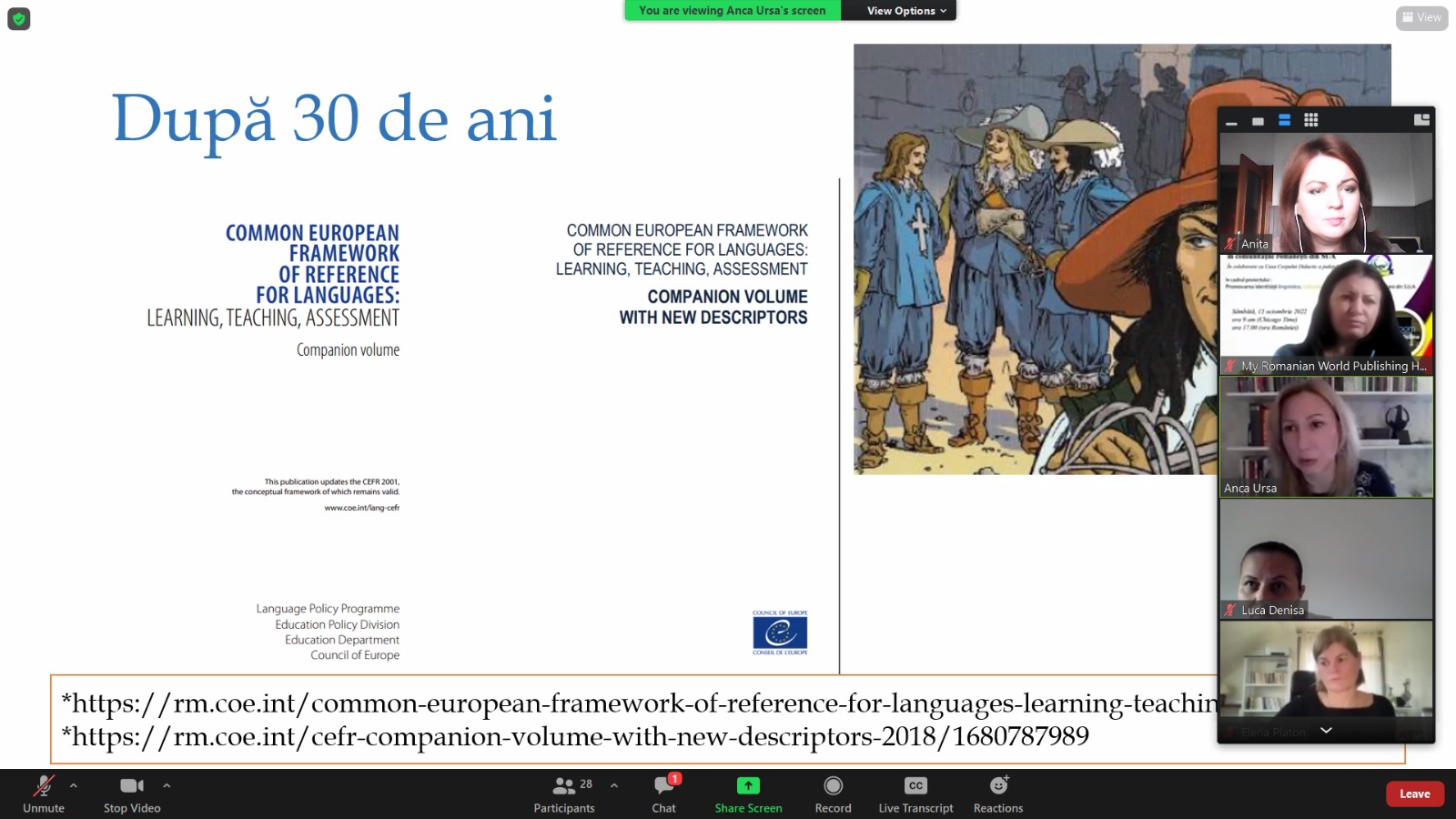 S-au alăturat discuțiilor directori ai unor școli românești din Haga, Germania, Italia, iar de peste Ocean, din Connecticut și Chicago.
