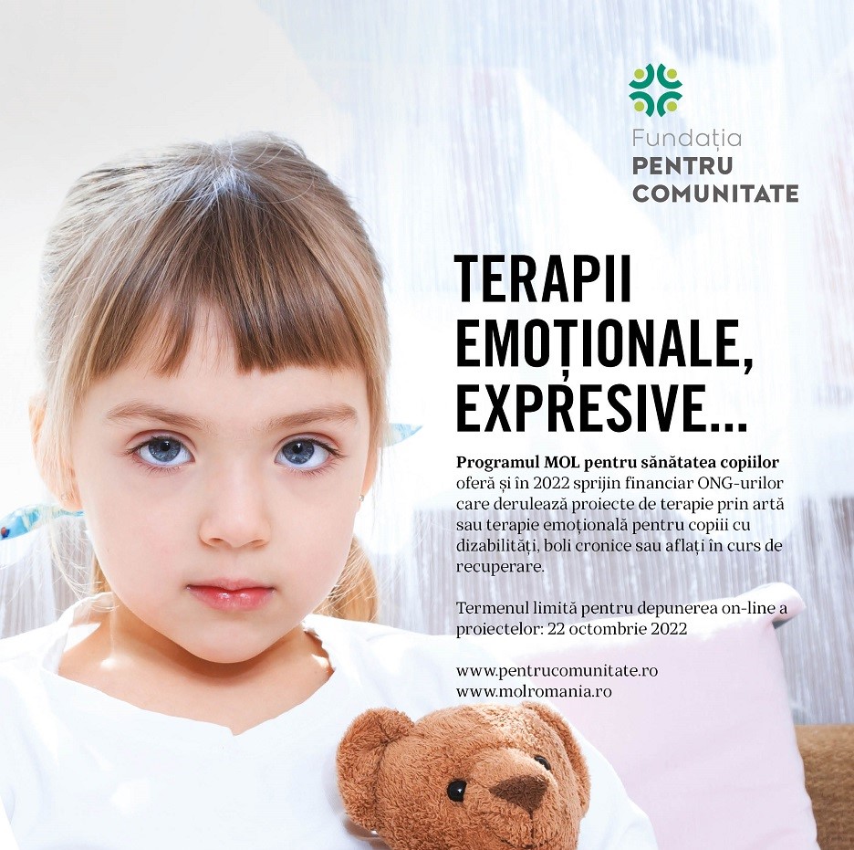 Programul MOL pentru sănătatea copiilor oferă finanțare pentru proiecte de terapii emoționale și expresive, având ca scop reabilitarea psiho-socială a copiilor cu afecțiuni cronice, în curs de recuperare după afecțiuni grave sau a copiilor care trăiesc cu dizabilități.