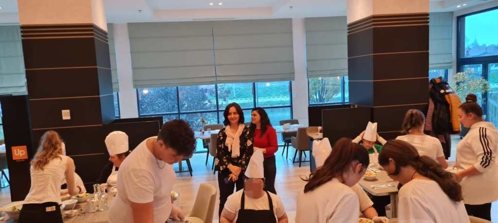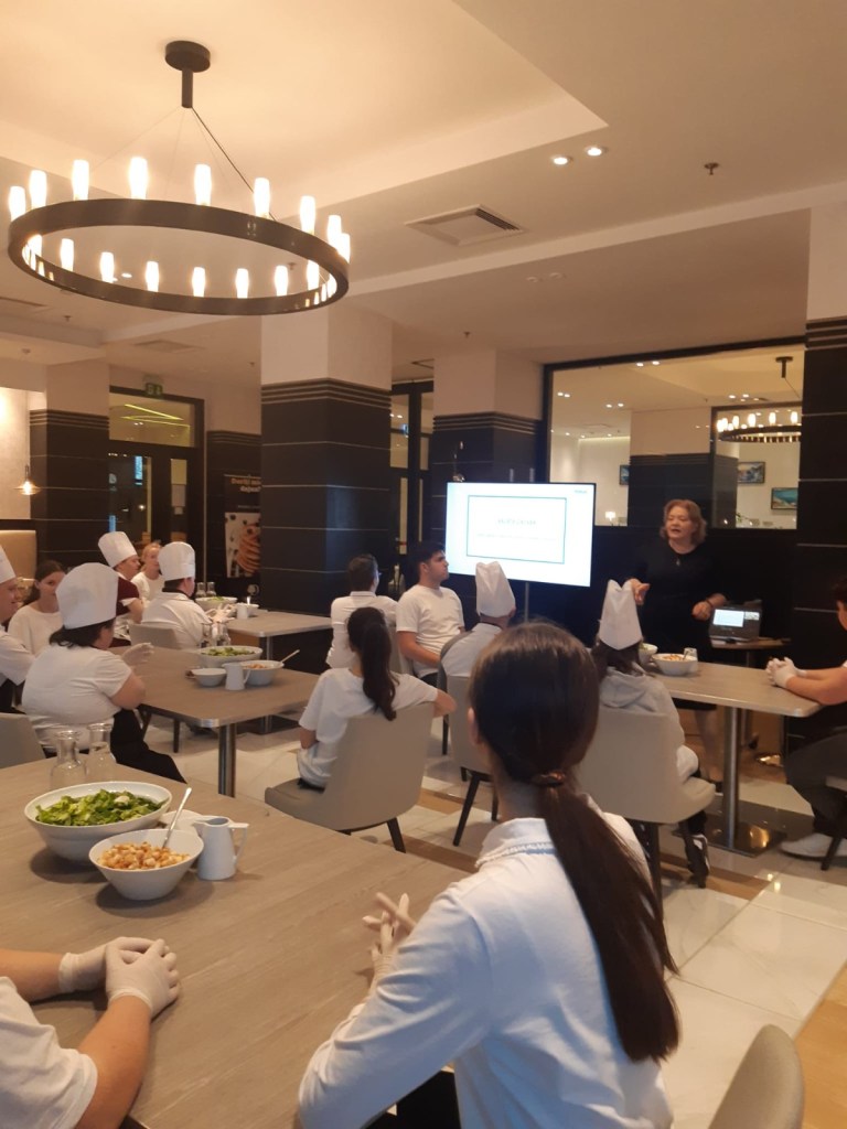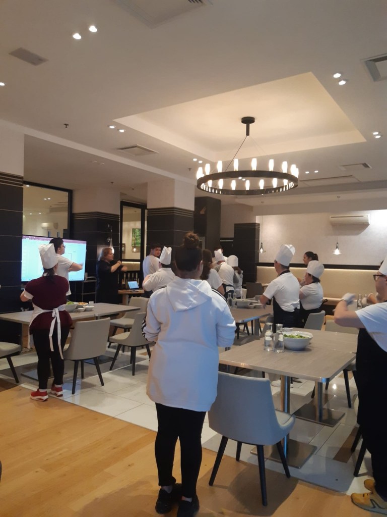 Activitatea cu tema Salata Cezar – rețeta clasică cu dressing cremos s-a desfășurat în Restaurantul Laurus din incinta hotelului, unde membrii Asociației Down Oradea / Centrul de Zi Iedera, alături de elevii practicanți, au gătit împreună Salata Cezar, sub atenta îndrumare a dnei Daniela Lazăr, General Manager Hotel DoubleTree by Hilton Oradea.