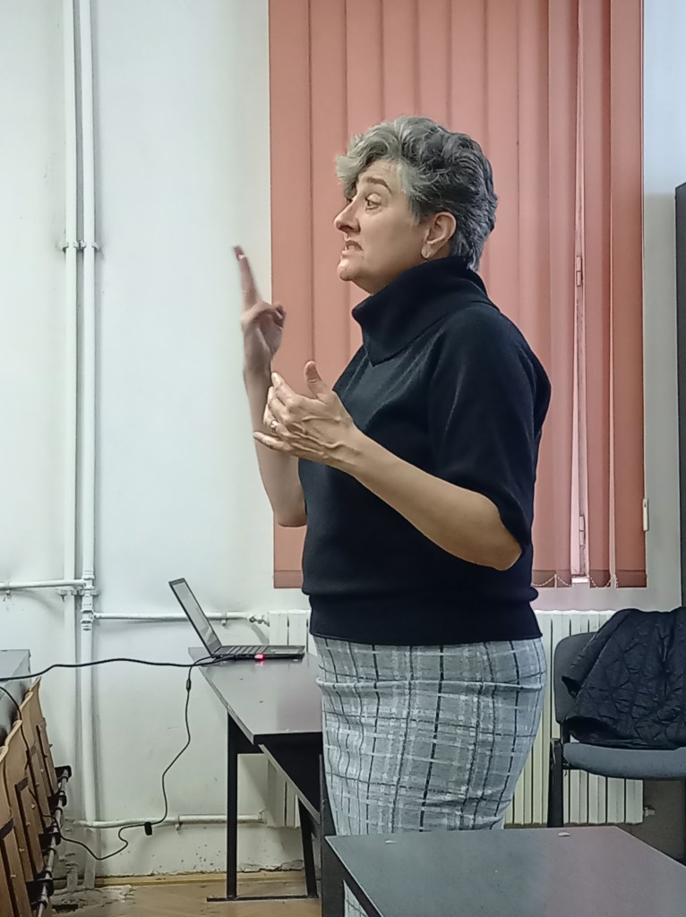 Cursul oaspetelui american, susținut joi, 11 noiembrie 2022, a fost un real succes, studenții orădeni dovedindu-se interesați de posibilitatea de a învăța în Statele Unite ale Americii. „Sunt fericită să fiu aici”, a spus, din capul locului, Sheila Schulte, subliniind că a venit „la Universitatea din Oradea pentru a consolida colaborarea cu University of North Georgia”. Avându-și campusul central în orașul Dahlonega, din statul Georgia, universitatea americană numără 150 de ani de existență și are, azi, peste 20.000 de studenți. University of North Georgia este una din cele șase instituții de învățământ din Statele Unite care are și un Corp al Cadeților, o școală superioară de tip militar, ai cărei absolvenți vor deveni ofițeri. „Așa se explică faptul că studenții români care au urmat până acum cursurile universității noastre veneau din Armata României”, a spus Sheila Schulte.