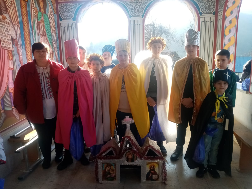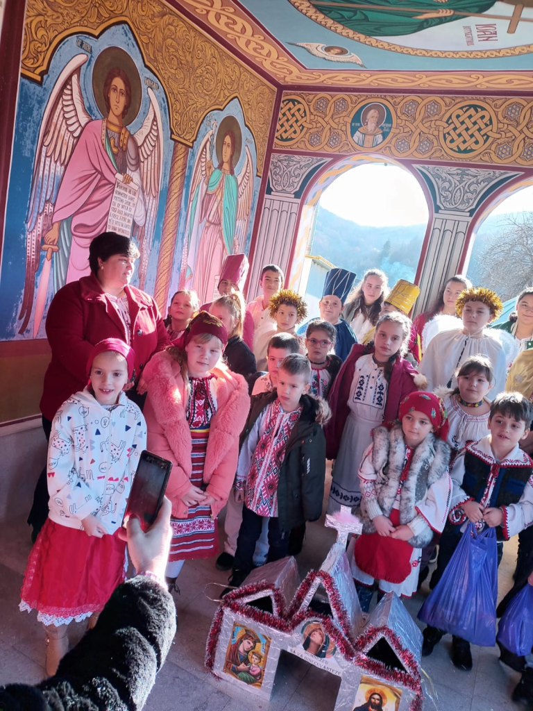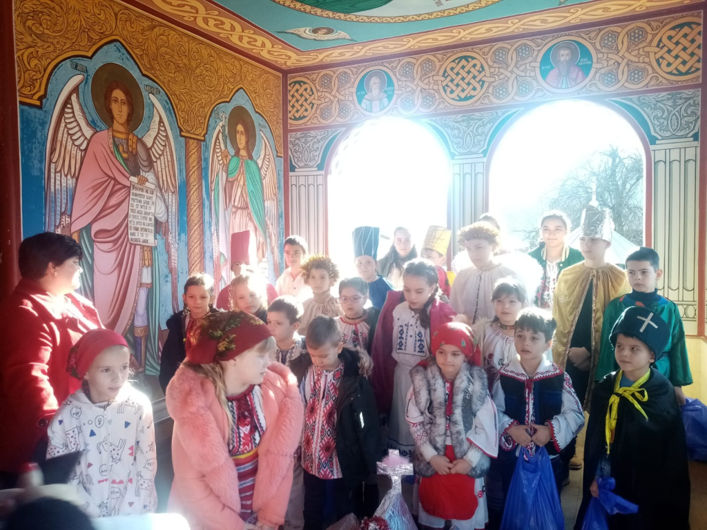 Copiii satului Poiana de Vașcău, în straie de sărbătoare, au colindat duminică, în prima zi de Crăciun, la biserica din sat, fiind coordonați de subsemnata, prof. Daciana Nica.
