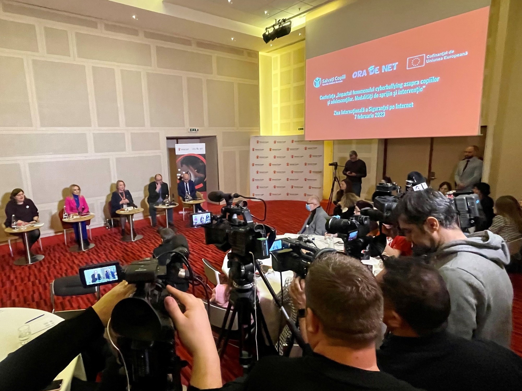 Pentru a marca Ziua Siguranței pe Internet, Organizația Salvați Copiii, alături de reprezentanți ai autorităților și partenerii proiectului de siguranță online – Ora de Net, a organizat o dezbatere, sub forma unui panel de discuții urmat de o masă rotundă, unde au fost analizate, alături de adolescenți, principalele probleme care apar ca urmare a cyberbully-ingului între elevi. (foto)