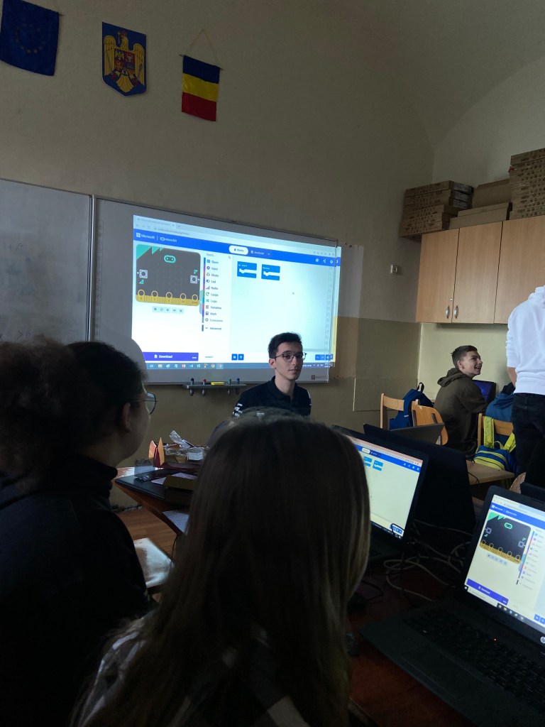– stagii de pregătire în care le prezentăm cât mai detaliat elevilor programele în care lucrăm și funcțiile acestora, precum Onshape pentru proiectare 3D și Microsoft MakeCode pentru programarea plăcuțelor Micro:Bit;