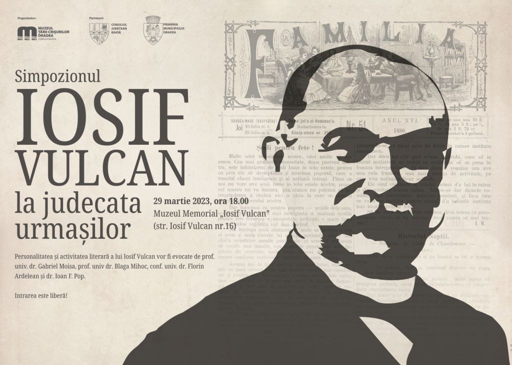 În 31 martie a.c. se împlinesc 182 de ani de la nașterea lui Iosif Vulcan (1841-1907), prilej cu care Muzeul Țării Crișurilor Oradea – Complex Muzeal, în parteneriat cu Consiliul Județean Bihor și Primăria Municipiului Oradea, organizează un simpozion dedicat cărturarului bihorean, intitulat Iosif Vulcan la judecata urmașilor, care va avea loc miercuri, 29 martie, a.c., ora 18.00, la sediul muzeului memorial Iosif Vulcan (str. Iosif Vulcan, nr. 16).