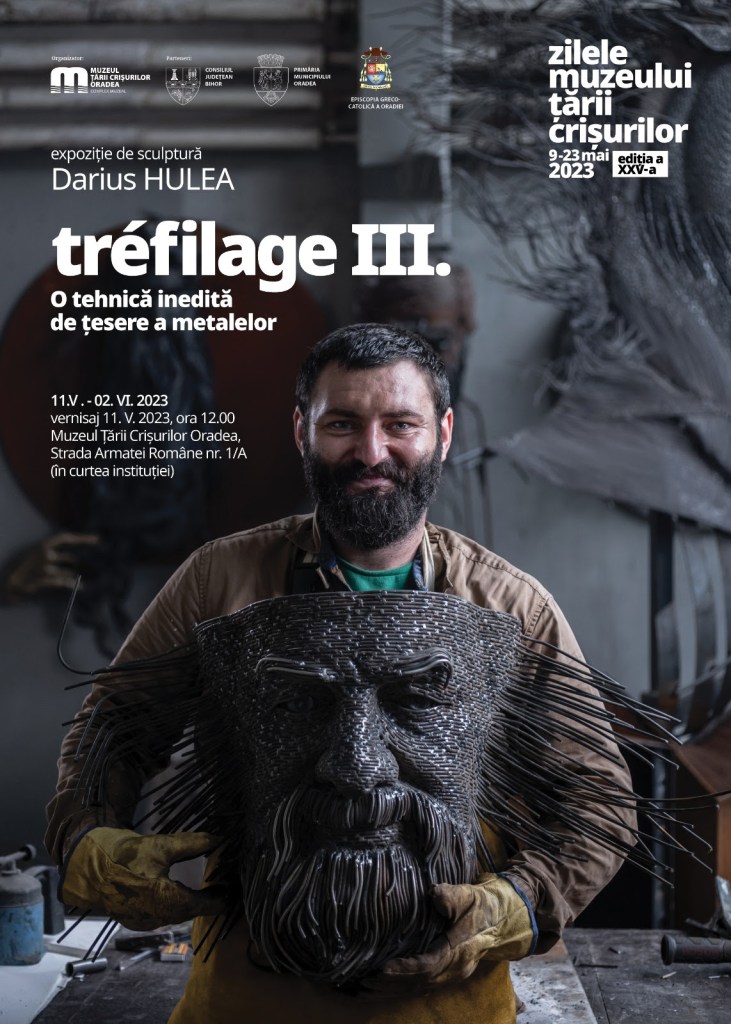 Muzeul Ţării Crişurilor Oradea – Complex Muzeal, împreună cu Episcopia Greco – Catolică de Oradea, Asociația Culturală Simion Bărnuțiu și Asociația Țara Celor Trei Crișuri, în parteneriat cu Consiliul Județean Bihor și Primăria Municipiului Oradea, organizează vernisajul expoziției de sculptură Tréfilage III. O tehnică inedită de țesere a metalelor, a artistului plastic Darius Hulea.