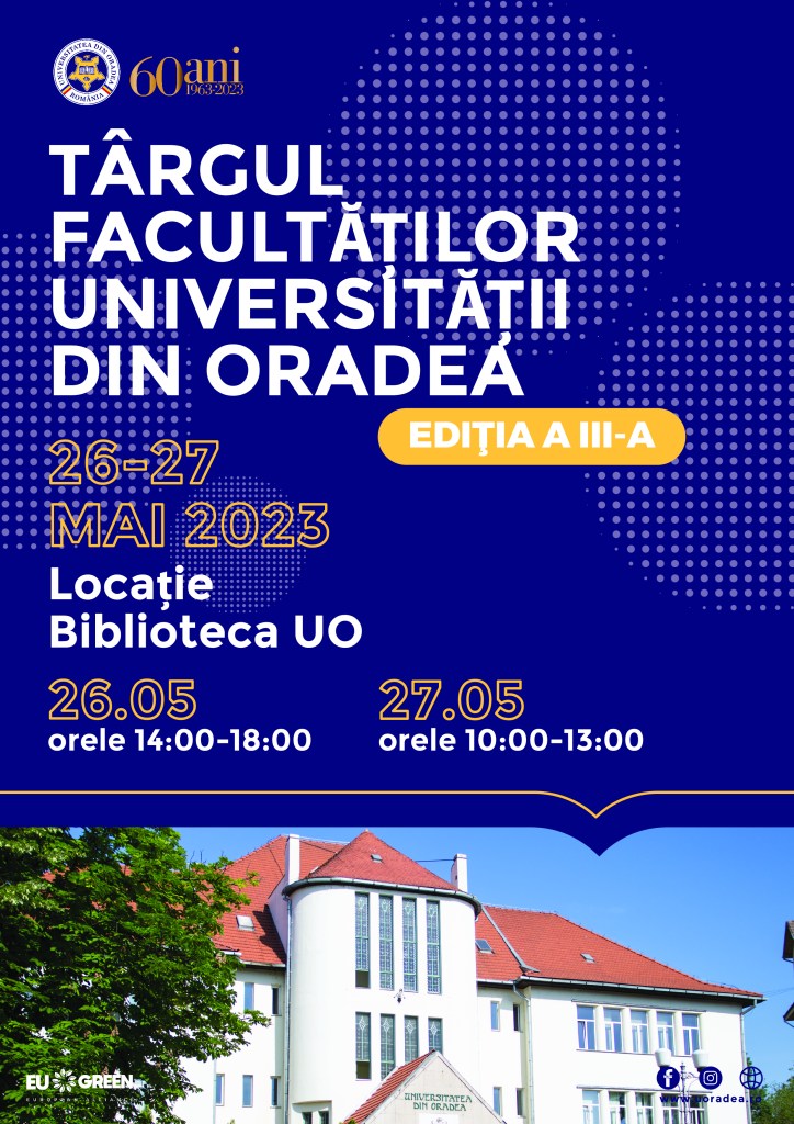 În intervalul 26-27 mai, Universitatea din Oradea organizează Târgul Facultăţilor, un eveniment dedicat celor interesaţi să-şi continue studiile la una dintre facultăţile acestei instituții.