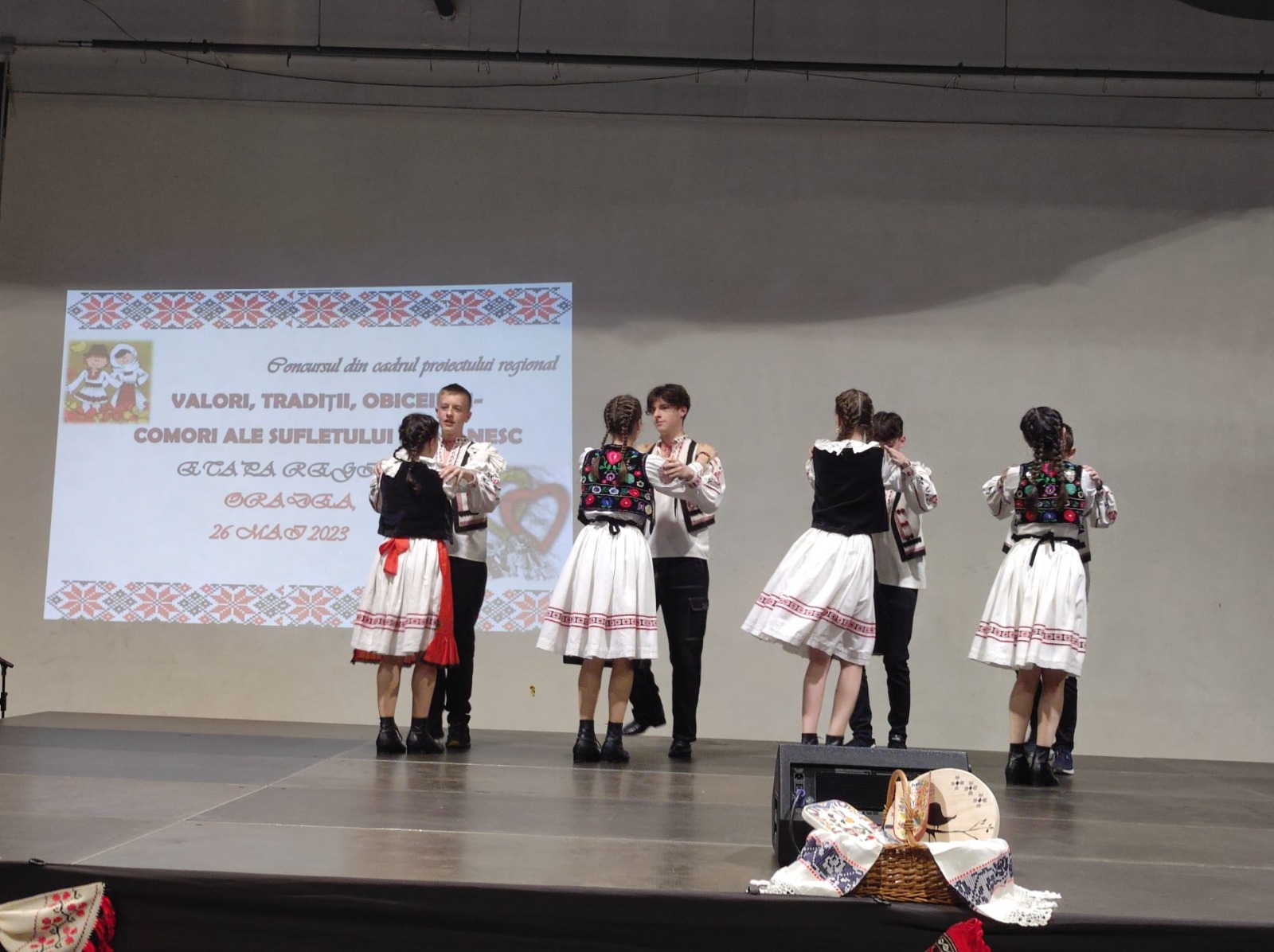 Vineri, 26 mai 2023, la cea de-a treia ediție a concursului din cadrul proiectului educativ regional, cu participare internațională Valori, tradiții, obiceiuri – Comori ale sufletului românesc, 120 de elevi din clasele I-XII, din județele Bihor, Arad, Satu Mare și Timiș, au demonstrat dragostea față de tradiție, față de spiritul românesc, prin cântec și dans popular.