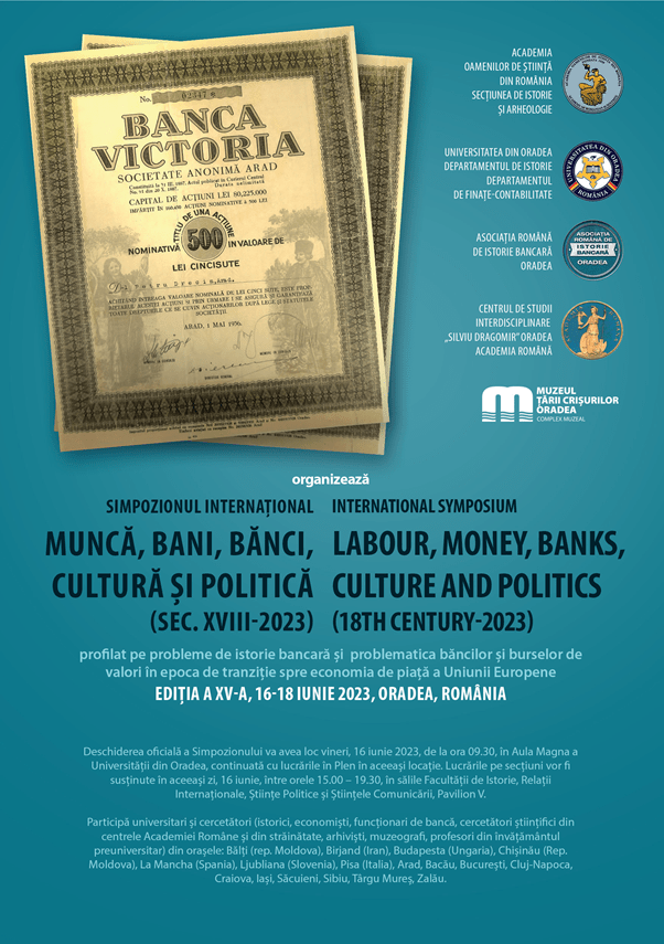 Universitatea din Oradea va găzdui, în zilele de 16 și 18 iunie 2023, cea de a XV-a ediție a Simpozionului internațional de istorie financiar-bancară.