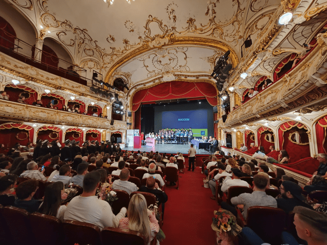 Sala Teatrului de Stat a fost miercuri, 14 iunie, gazda ceremoniei de absolvire a promoției 2023 a Facultății de Construcții, Cadastru și Arhitectură. În discursul său, rectorul Universității din Oradea, prof. univ. dr. ing. habil. Constantin Bungău, i-a asigurat pe absolvenți că fac parte dintr-o generație ai unei facultăți care nu scoate șomeri: „Numai să doriți să profesați și veți avea, cu siguranță, un loc de muncă”.