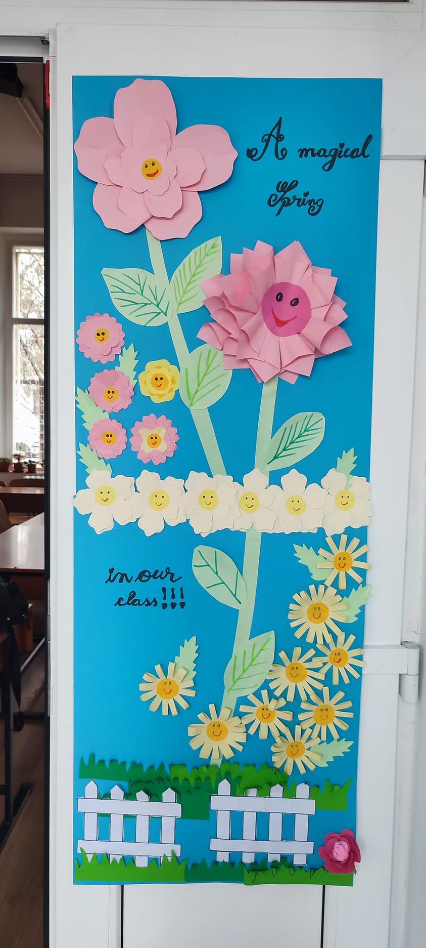 Inspirație de la școlile din afară sau nu, eu așa am simțit că e normal ca atunci când elevul intră în sala de clasă (unde-și petrece patru sau chiar opt ore pe zi) să fie întâmpinat de un mesaj vizual plăcut, optimist care să- i asigure starea de bine și apartenența la grupul din care face parte. De cele mai multe ori decorul de pe ușa clasei a fost rezultatul muncii în echipă. Au lucrat fiecare individual, apoi s-a unit totul formând un întreg. Ar fi multe exemplificările, doar că au dispărut pozele. Ne amintim cu drag de fiecare în parte, de bucuria creată în sufletul nostru și de multe alte momente trăite dincolo de acestea.
