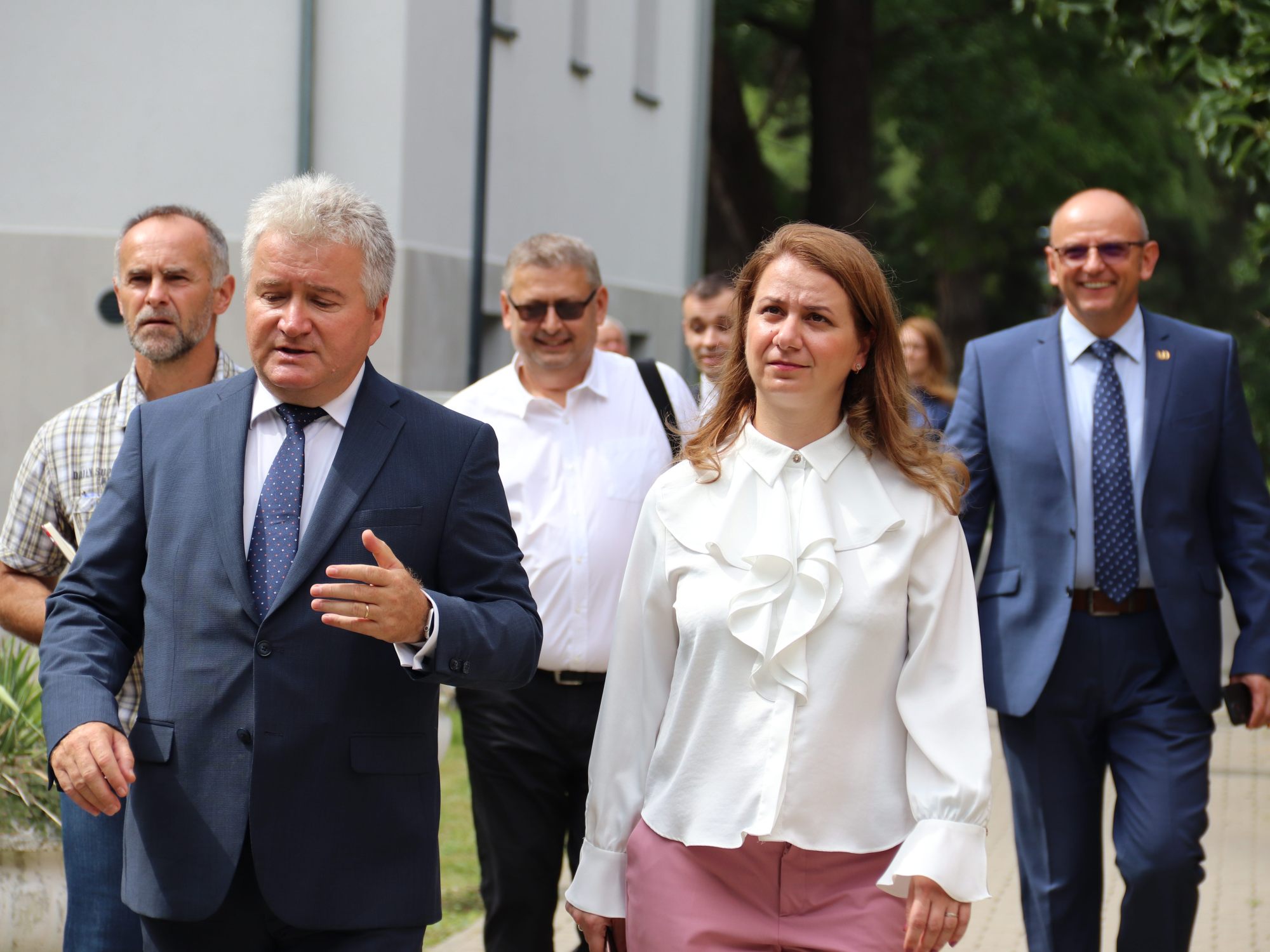 Rectorul Universității din Oradea, prof. univ. dr. habil. Constantin Bungău, i-a prezentat dnei Ligiei Deca șantierul viitorului Centru de Transfer Tehnologic. „Ne dorim să facem din acest spațiu locul de întâlnire al cercetării cu producția”, a afirmat rectorul.