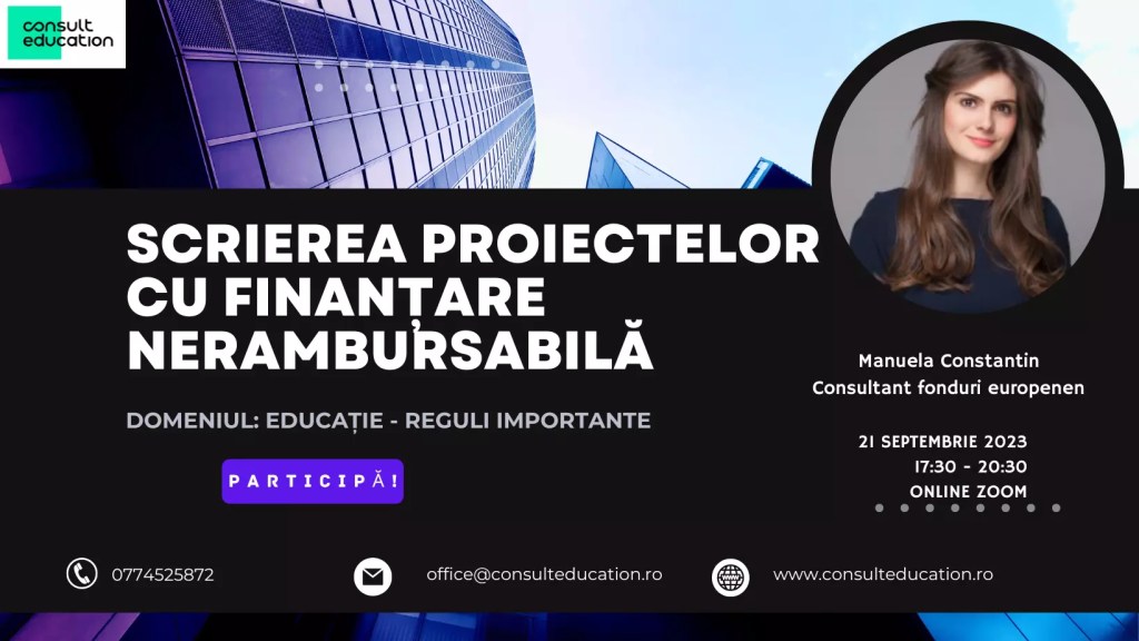 Cei interesați sunt invitați la cursul privind Scrierea proiectelor cu finanțare nerambursabilă în domeniul educației – Reguli importante.