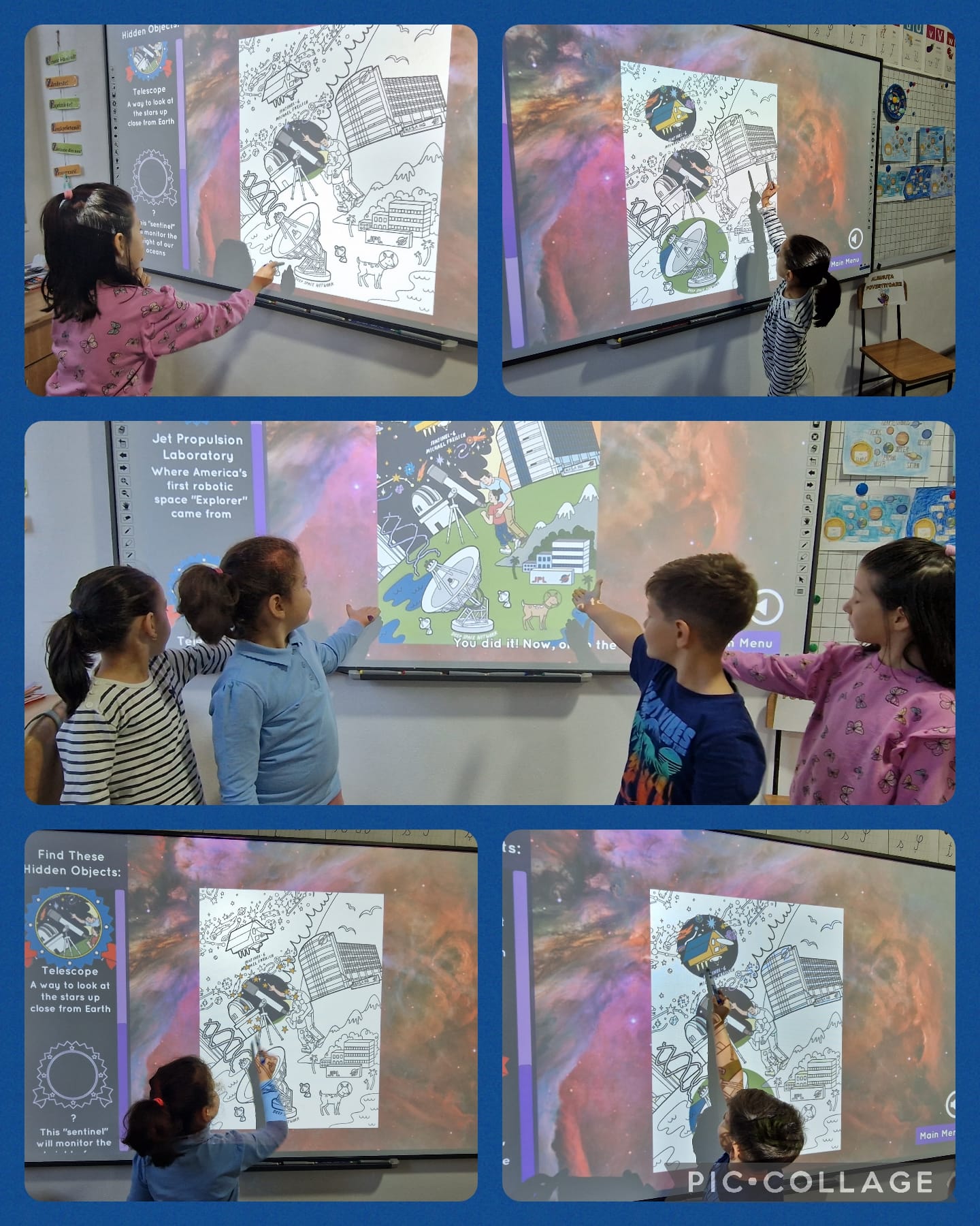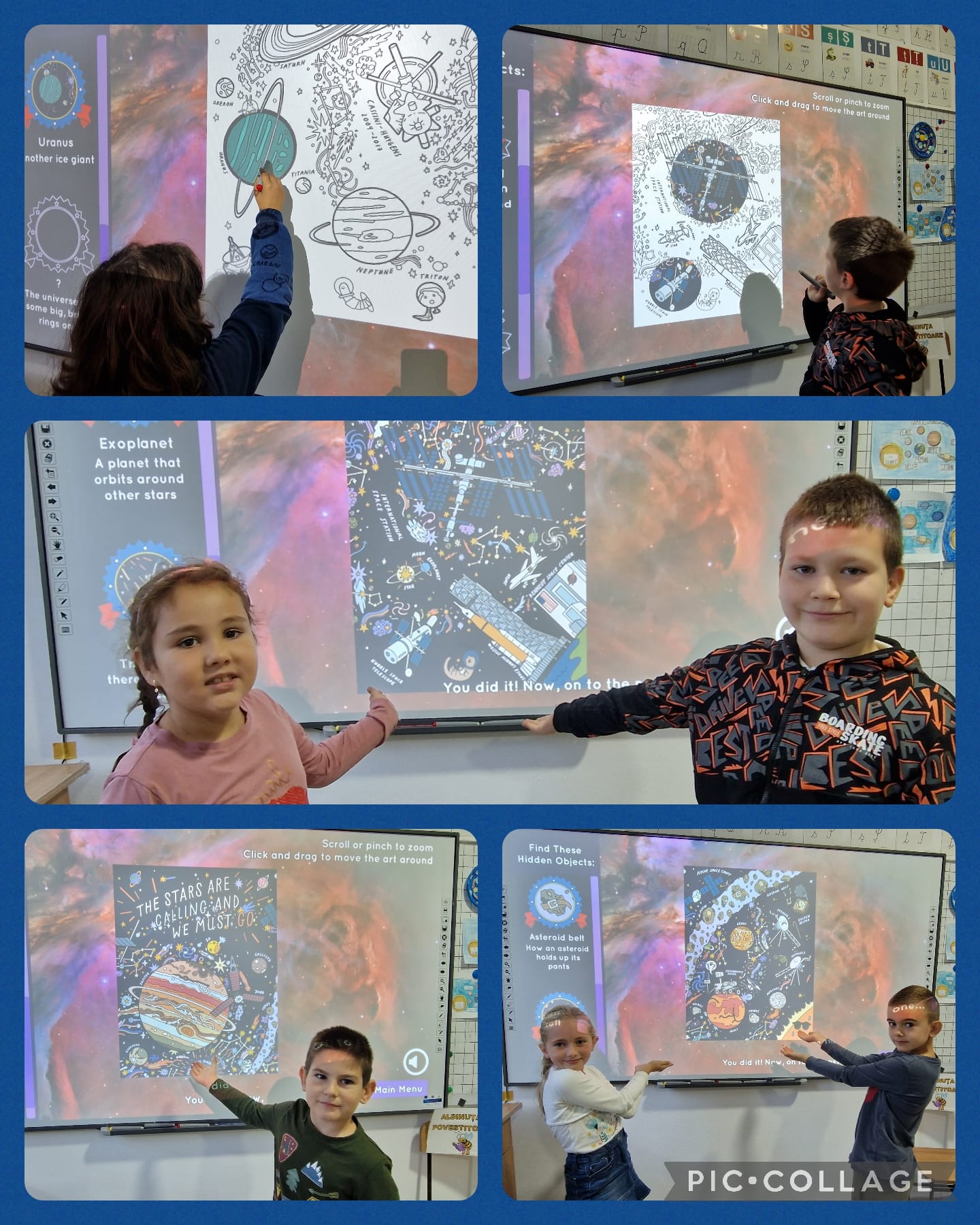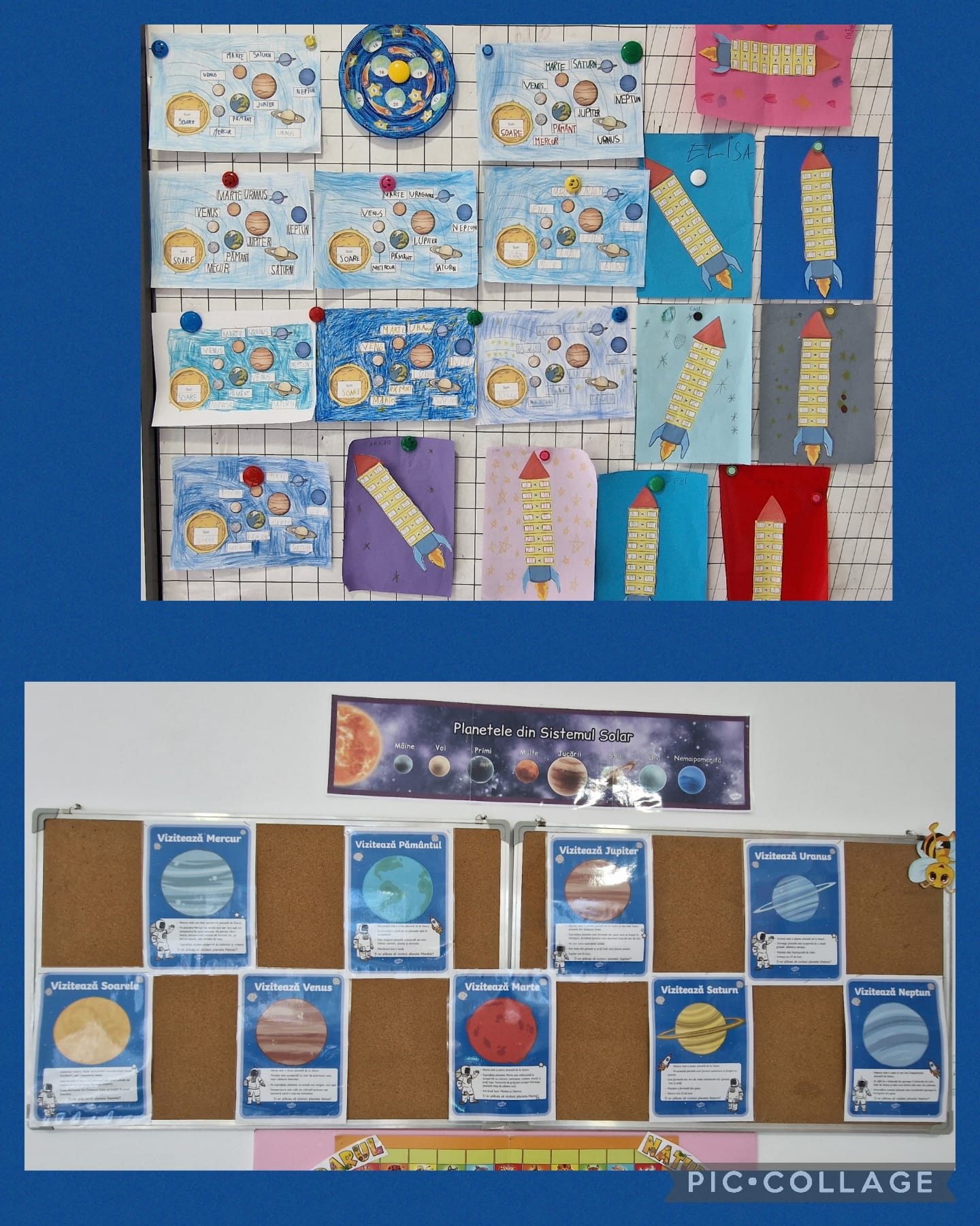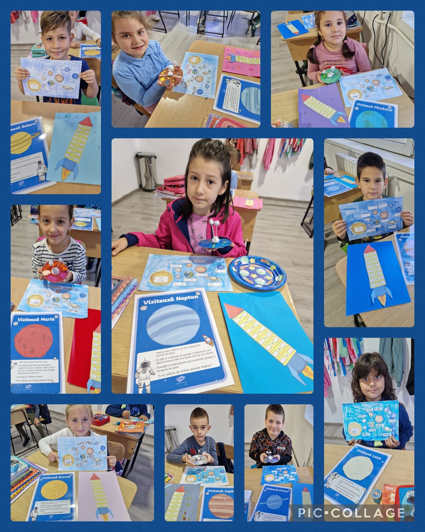 Planetele sistemului Solar – videoclip, joc de rol cu cartonașe informative, realizarea unor desene identificând denumirea fiecărei planete, toate acestea având ca finalitate pavoazarea unui perete din sala de clasă