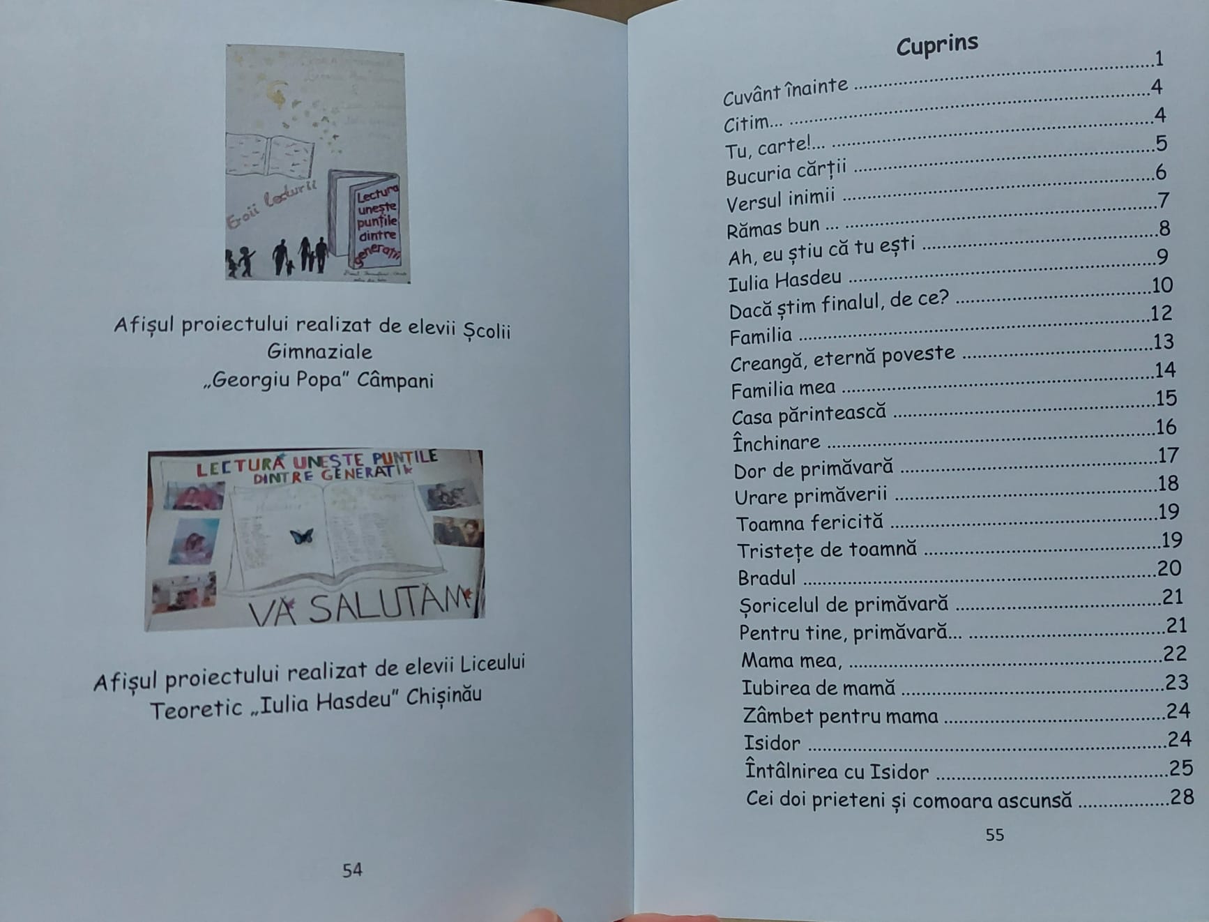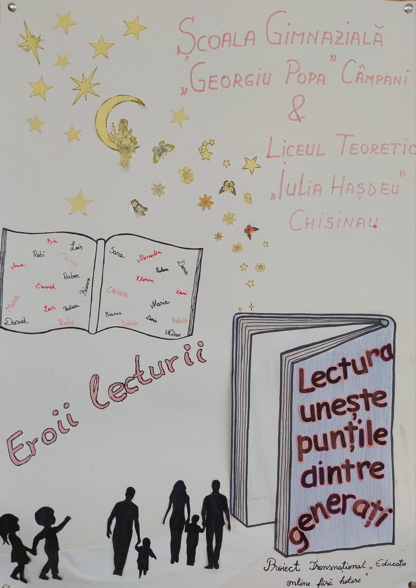 Proiectul educațional Lectura unește punțile dintre generații din cadrul Programului transfrontalier Educație online fără hotare, inițiativă a Direcției Generale Educație Tineret și Sport a Consiliului Municipal Chișinău, organizat în parteneriat de către Școala Gimnazială Georgiu Popa – Câmpani și Liceul Teoretic Iulia Hașdeu – Chișinău s-a finalizat cu succes în anul școlar anterior.