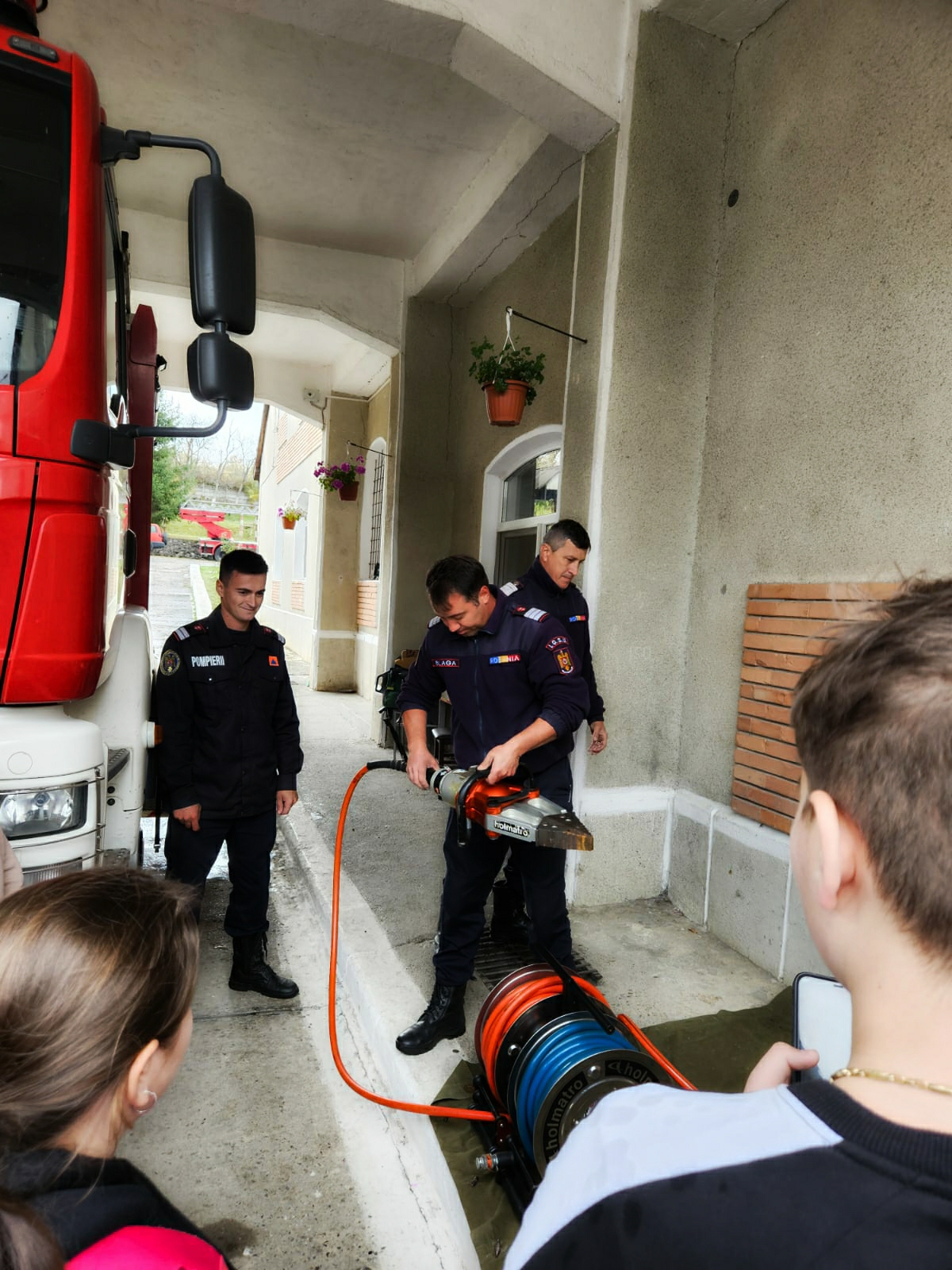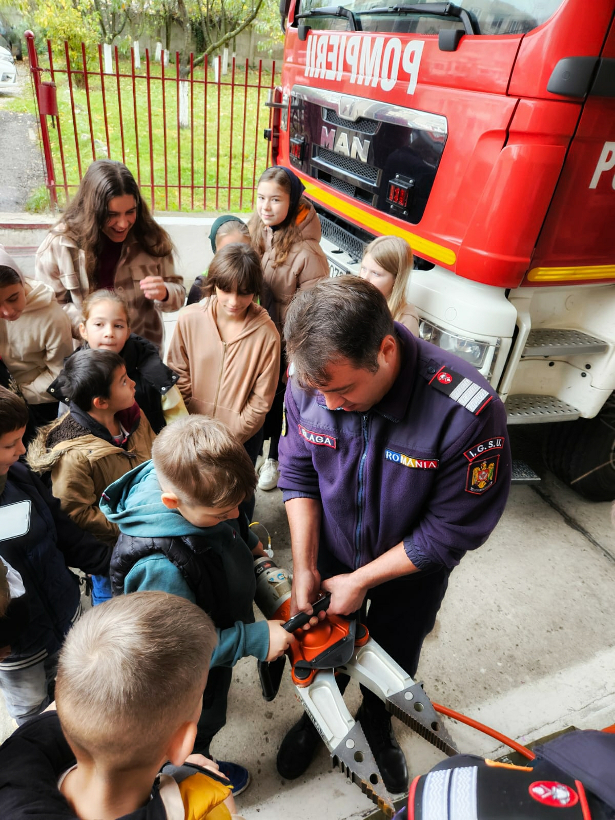 Aici, elevii și dascălii lor – prof. Alexandra Ghiula, prof. Florina Rif, prof. Claudiu Pirtea și subsemnata, prof. Petronela Heredea – au fost primiți cu căldură de o echipă de pompieri. Aceștia le-au arătat copiilor cum intervin în caz de incendii, accidente, inundații, cutremure sau alte situații de urgență, oferindu-le ocazia să îmbrace hainele care păzesc viața.
