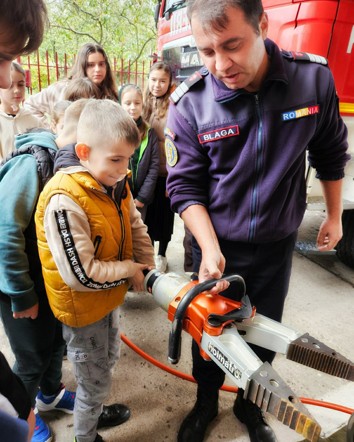Aici, elevii și dascălii lor – prof. Alexandra Ghiula, prof. Florina Rif, prof. Claudiu Pirtea și subsemnata, prof. Petronela Heredea – au fost primiți cu căldură de o echipă de pompieri. Aceștia le-au arătat copiilor cum intervin în caz de incendii, accidente, inundații, cutremure sau alte situații de urgență, oferindu-le ocazia să îmbrace hainele care păzesc viața.