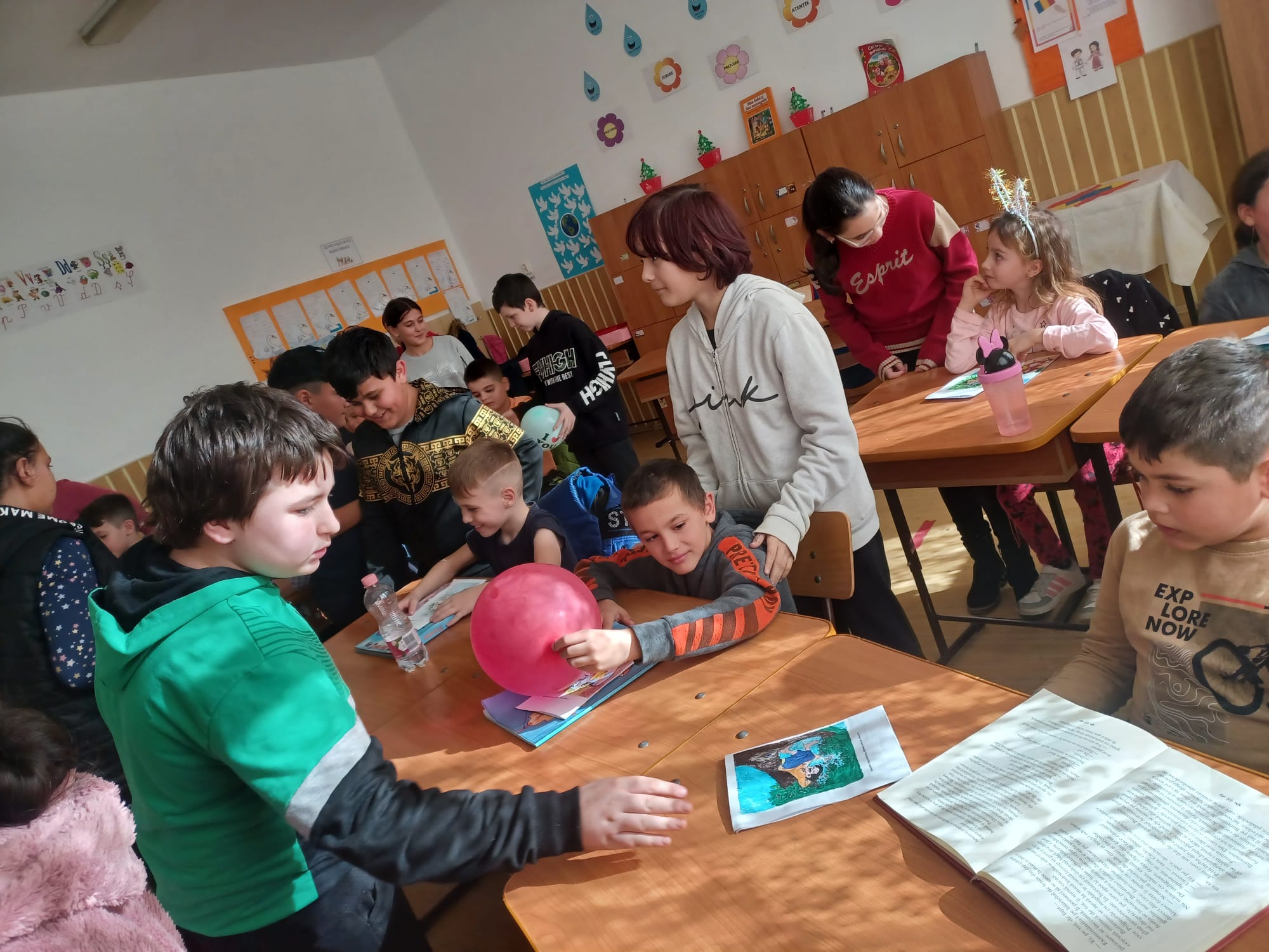 Totodată, elevii clasei a V-a i-au încurajat pe elevii din clasa I să citească, oferindu-le câte un balon și o felicitare cu un mesaj simbolic și un desen reprezentativ pentru semnificația acestei zile. Clasa I i-au răsplătit cu aplauze și îmbrățișări calde.