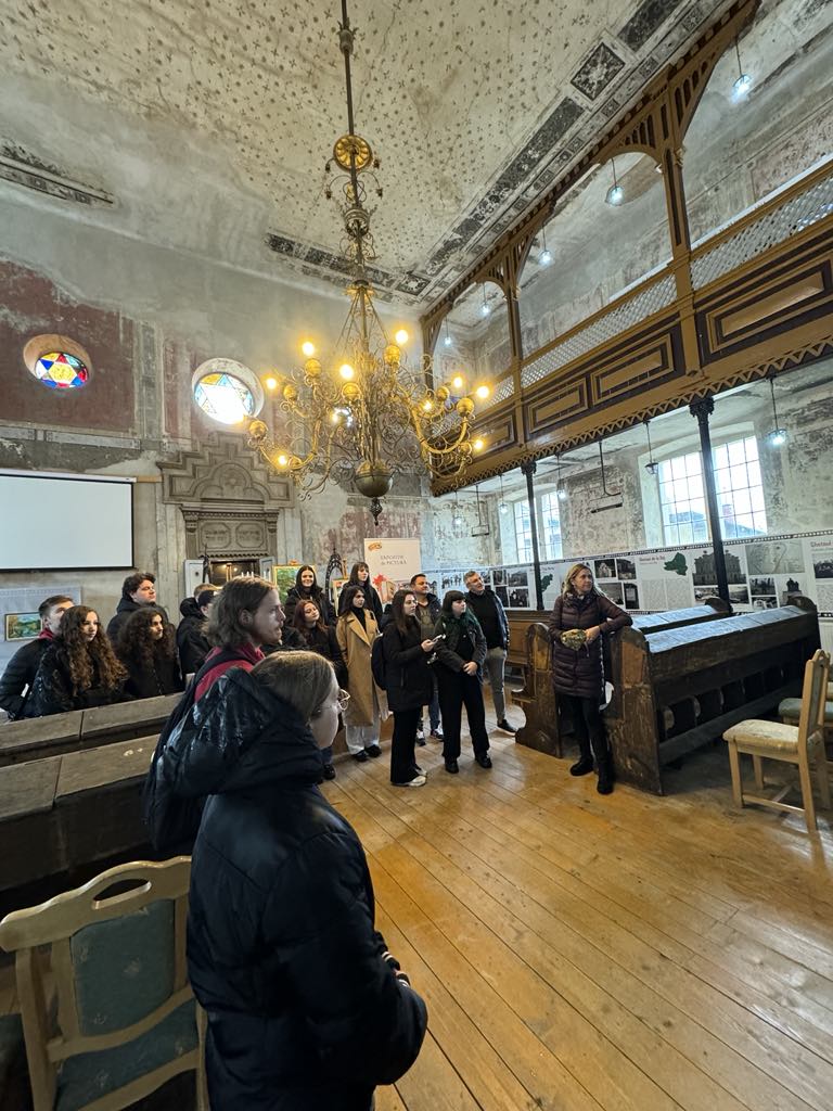 Cea de-a doua oprire a fost la Sinagoga din Șimleu Silvaniei, astăzi Muzeu Memorial al Holocaustului, prima instituție de acest fel din Transilvania de Nord. „Această vizită a constituit o experiență emoționantă pentru studenții cursului de Comunicare și Xenofobie, amplificând relevanța discuțiilor noastre pe tema antisemitismului”, explică lect. univ. dr. Irina Pop.