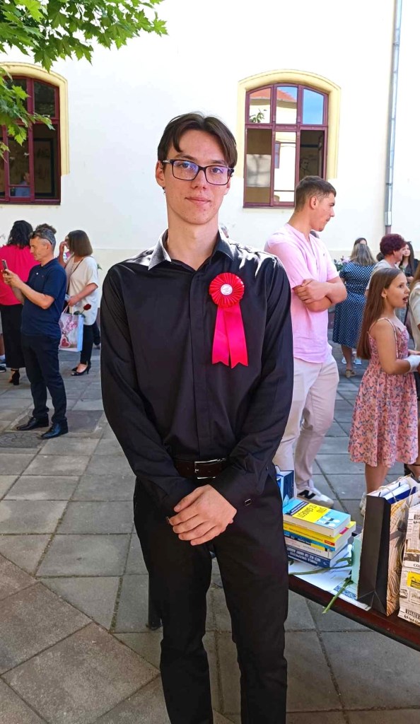 Andrei Ovidiu Petrache, care este șeful Promoției 2020-2024 (media generală 10), adaugă acest Premiu I la palmaresul succesului său literar care numără peste 40 de distincții internaționale, naționale și județene obținute în cei patru ani de liceu.