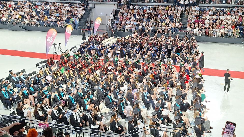 Sute de studenți au pășit pe covorul roșu, ocupând jumătate din spațiul de joc al arenei sportive. Toți au fost emoționați, încrezători, plini de speranțe. Toți sunt de acum medici și cadre tehnice medicale.