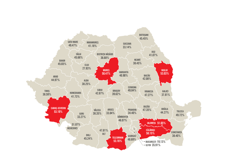 După contestații, rezultatele finale ale Evaluării Naționale arată că trei din cinci copii intrați în școală acum nouă ani au reușit să obțină medii peste 5. Situația în plan teritorial este și mai îngrijorătoare. În timp ce, la nivel național, ponderea elevilor înscriși în clasa pregătitoare acum nouă ani și care nu au ajuns până la finalul clasei a VIII-a este de puțin peste 15%, în plan teritorial există discrepanțe foarte mari, existând județe unde nivelul acestui indicator se apropie sau depășește pragul de un sfert dintre elevii înscriși la școală: Giurgiu (27,26%), Călărași (25,9%), Covasna (24,51%).