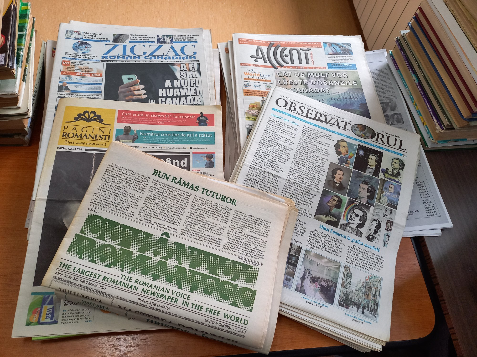 De asemenea, publicațiile bilunare canadiene: Accente – Montreal, Observatorul, Zig-Zag româno-canadian și Pagini Românești, pentru intervalul 2021 – 2023, au intrat și ele în fondul Bibliotecii Universității din Oradea, bibliotecarii lucrând, chiar în aceste zile, la înregistrarea colecțiilor.