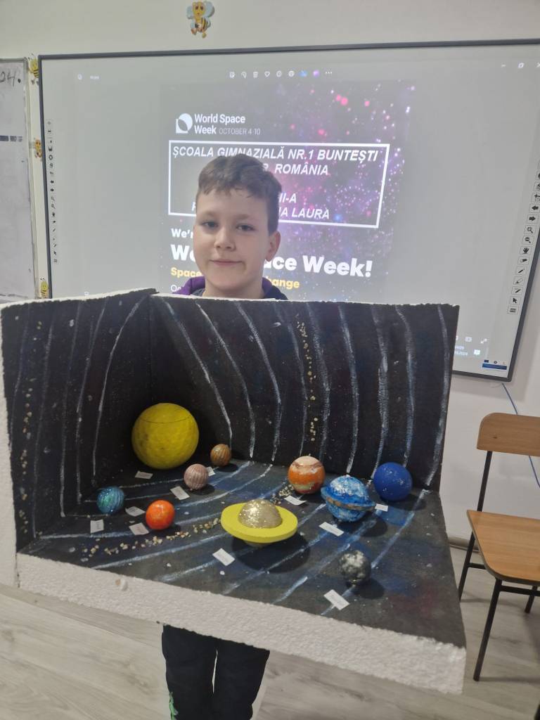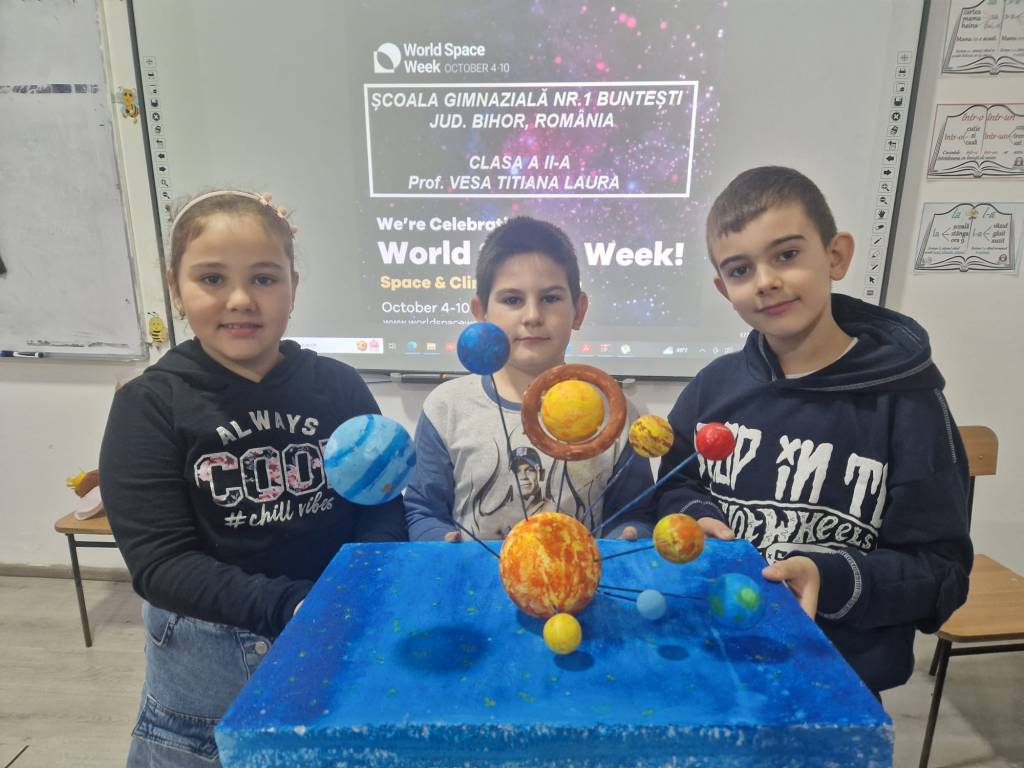 În perioada 1-10 octombrie 2024, la Școala Gimnazială nr. 1 Buntești, elevii clasei a II-a au participat la activități de promovare a astronomiei și a științelor spațiale, activități al căror scop principal l-a reprezentat stimularea motivației învățării în domeniul disciplinelor STEAM, folosind ca pretext cognitiv conceptul de spațiu cosmic.
