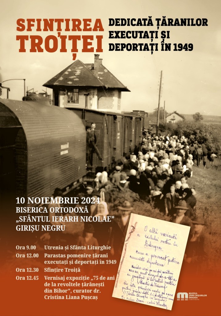 Parohia Ortodoxă din Girișu Negru, împreună cu Muzeul Țării Crișurilor Oradea – Complex Muzeal, cu sprijinul financiar al familiilor deportaților din 1949, organizează, duminică, 10 noiembrie 2024, un eveniment dedicat împlinirii a 75 de ani de la rebeliunea țărănească din Bihor.