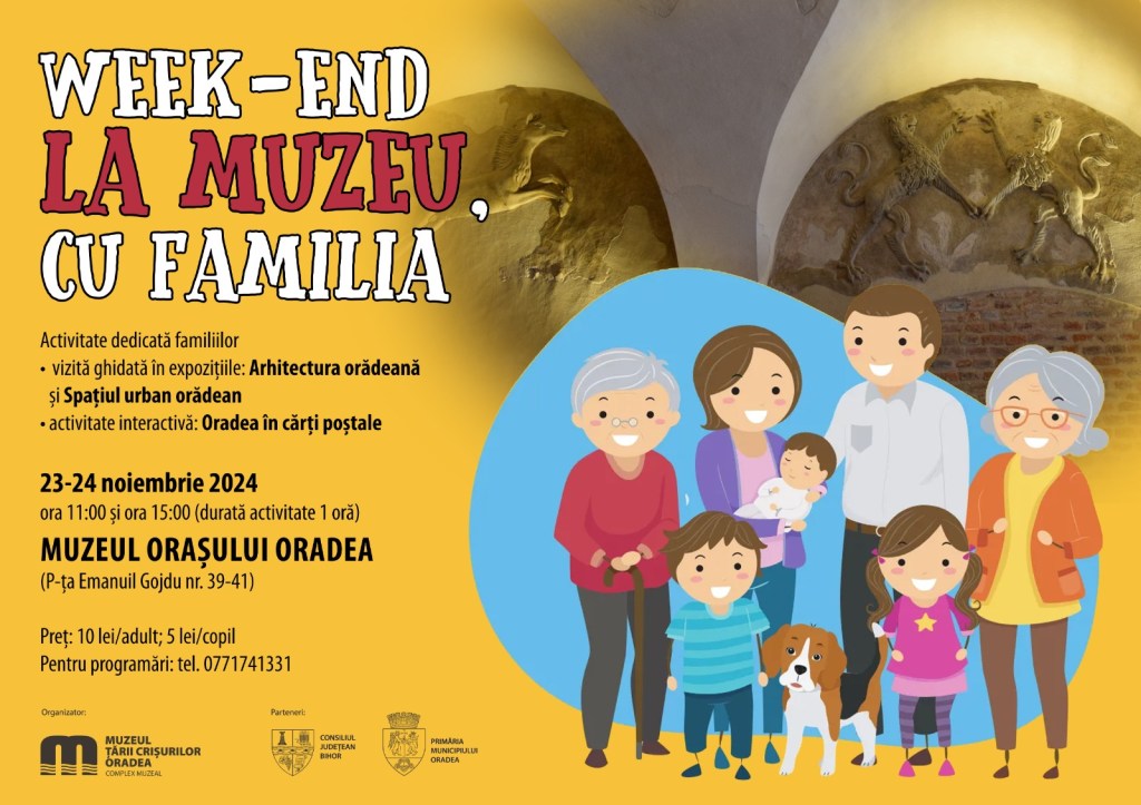 Muzeul Țării Crișurilor Oradea – Complex Muzeal, în parteneriat cu Consiliul Județean Bihor și Primăria Municipiului Oradea, organizează activitatea de educație muzeală Week-end la Muzeu, cu familia.