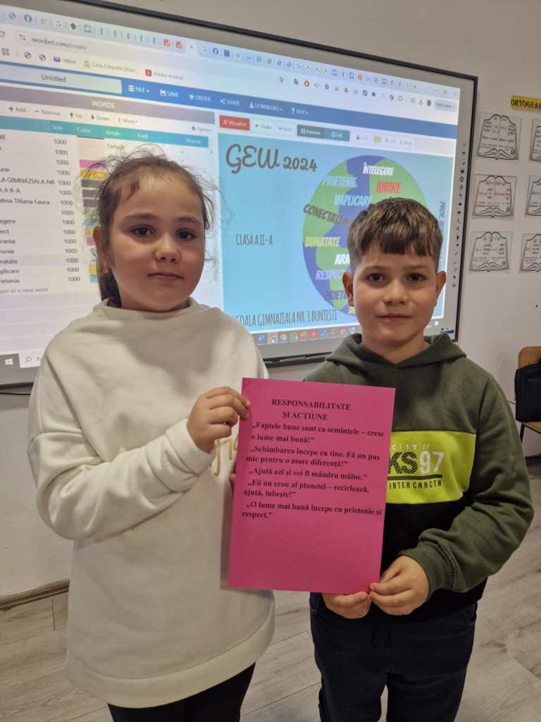 În perioada 18-22 noiembrie 2024, albinuțele clasei a II-a de la Școala Gimnazială nr. 1 Buntești, județul Bihor, coordonați de subsemnata, prof. Titiana Laura Vesa, au marcat Săptămâna Educației Globale prin mai multe activități.