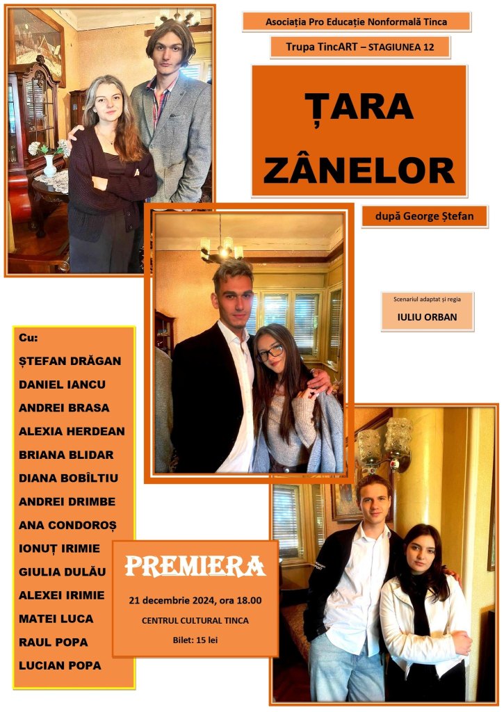Iubitorii de teatru şi film sunt invitaţi cu drag la cele două premiere, la Centrul Cultural Tinca, în 14 și 21 decembrie, începând cu ora 18:00.