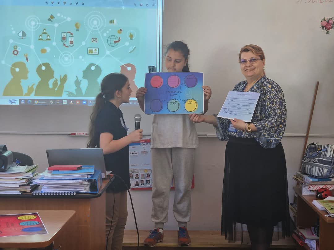 Astfel, am discutat despre comunicarea: asertivă, agresivă și pasivă. Elevii au învățat să recunoască diferențele dintre cele trei tipuri de comunicare și să înțeleagă importanța comunicării asertive în relațiile interpersonale. Pe parcursul activității, elevii au fost încurajați să-și exprime opiniile și să lucreze în echipă pentru a recunoaște caracteristicile principale ale fiecărui tip de comunicare. De asemenea, au purtat ecusonul și au folosit microfonul, acestea fiind simboluri ale proiectului.