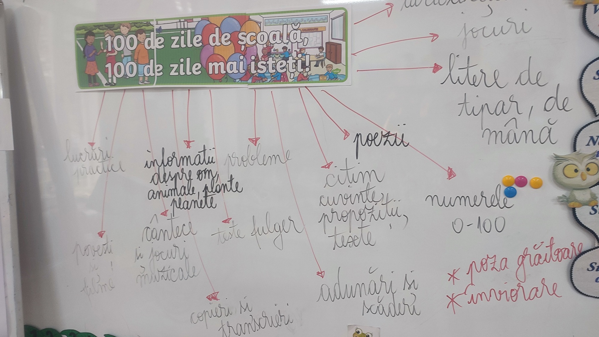 Elevii au sărbătorit primele o sută zile de școală din clasa întâi. Începând din toamnă, din prima zi, elevii la întâlnirea de dimineață au numărat fiecare zi (cu ajutorul unui panou și a unei steluțe) în care au venit la școală, facilitând în acest mod învățarea numerelor naturale până la o sută.