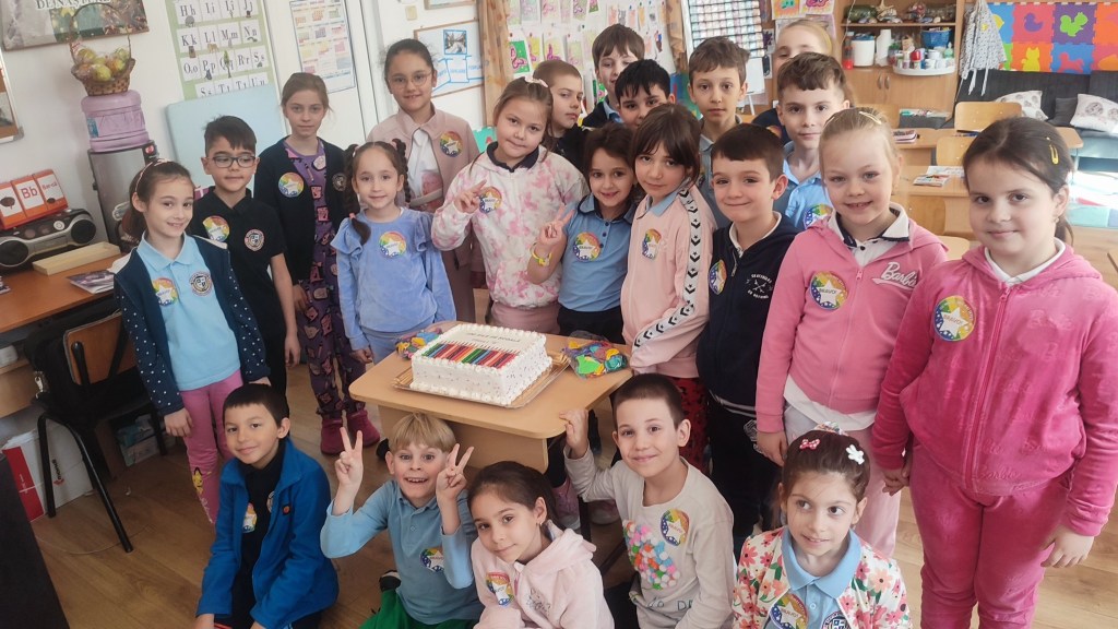 Ecusoanele primite la intrarea în clasă, tortul gustos decorat în ton cu acest eveniment și baloanele multicolore au încadrat în mod perfect această zi într-una de sărbătoare.