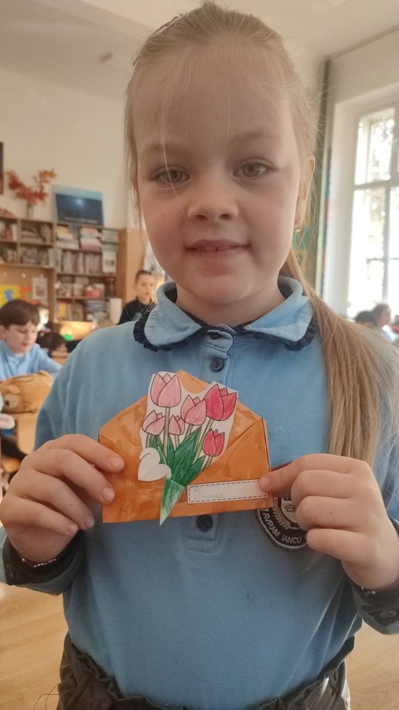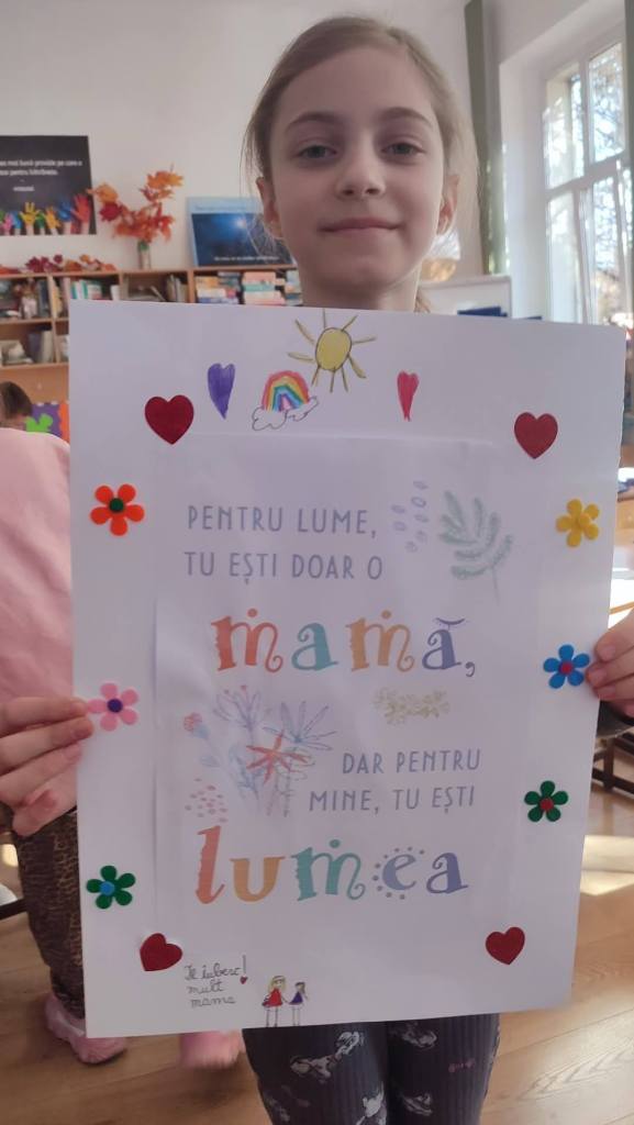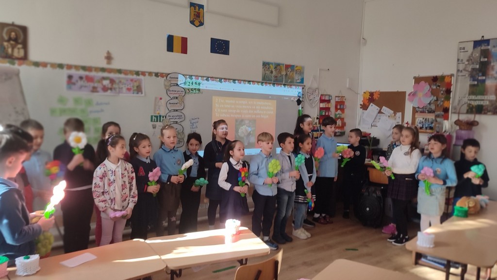 Săptămâna 3-7 martie a fost o săptămână dedicată mamelor, astfel în sala de clasă fiind inaugurat un adevărat atelier de creaţie, zi de zi elevii realizând tablouri, felicitări, cutiuţe magice, desene, afişe pe care să le dăruiască acestora.