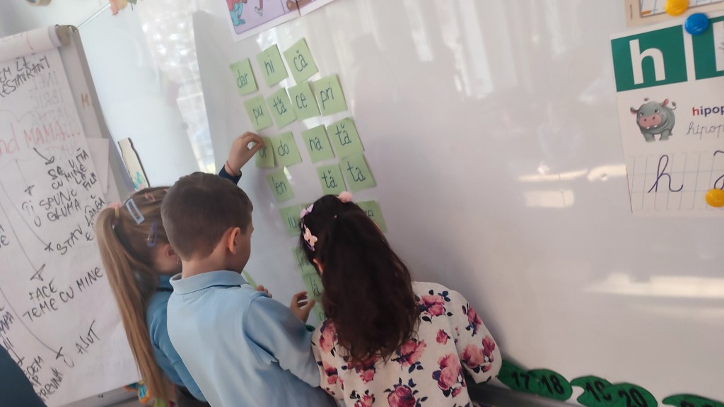 Asistentelor (au fost doar doamne) li s-au împărțit din recuzita clasei, palete cu like/ dislike pe care acestea le-au utilizat ca și confirmare sau dezaprobare pentru răspunsurile date de către elevi la câteva întrebări legate de acestea (vârstă, preferințe, culoarea ochilor, familie, etc.)/