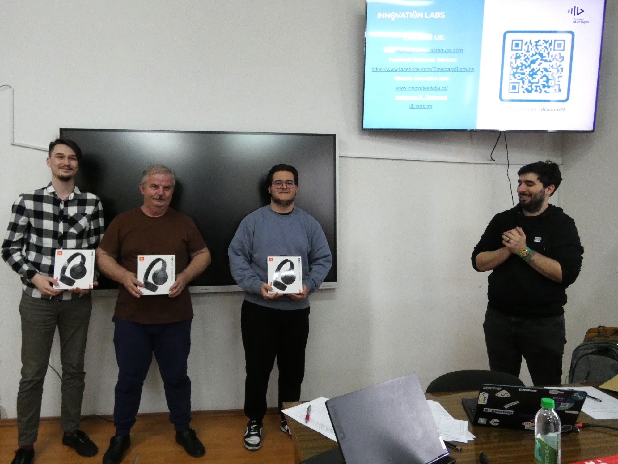 Cei trei câștigători au primit, din partea Innovation Labs – Idea Jam câte o casă audio wireless și șansa de a participa la hackathon-ul de la Timișoara. „Vă promit că o să fie distractiv și intensiv”, a spus gazda evenimentului, conf. univ. dr. Constantin Novac, ambasador Innovation Labs, cadru didactic al Facultății de Inginerie Electrică și Tehnologia Informației. De altfel, 26 de elevi și studenți din Oradea s-au și înscris deja pentru a lua parte la următoarea etapă a concursului de idei.