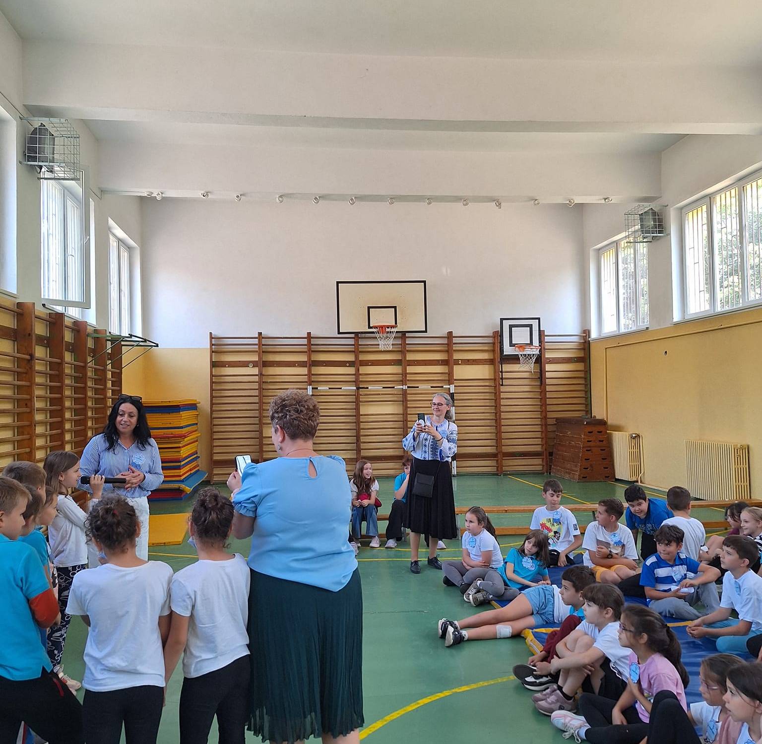 Activitatea a debutat cu pregătirea cadrului de desfășurare, și anume pregătirea sălii de sport ca mediu propice activității. Astfel, elevii au avut vestimentația de culoare albastră, s-au pregătit microfoanele, baloanele multicolore, sigla proiectului, ecusoanele proiectului pentru toți participanții, precum și saltelele de sport, tot albastre și confortabile, alături de niște băncuțe. Elevii s-au așezat cu drag pe acestea din urmă și au fost entuziasmați să le cunoască pe doamnele invitate.