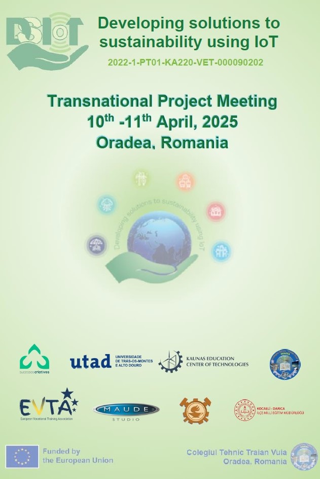 În perioada 10-11 aprilie 2025, Colegiul Tehnic Traian Vuia din Oradea a fost gazda unei importante întâlniri transnaționale în cadrul proiectului Erasmus+ KA220 VET, Developing solutions to sustainability using IoT – Dezvoltarea de soluții pentru sustenabilitate folosind Internetul lucrurilor, derulat în perioada 2022-2025.