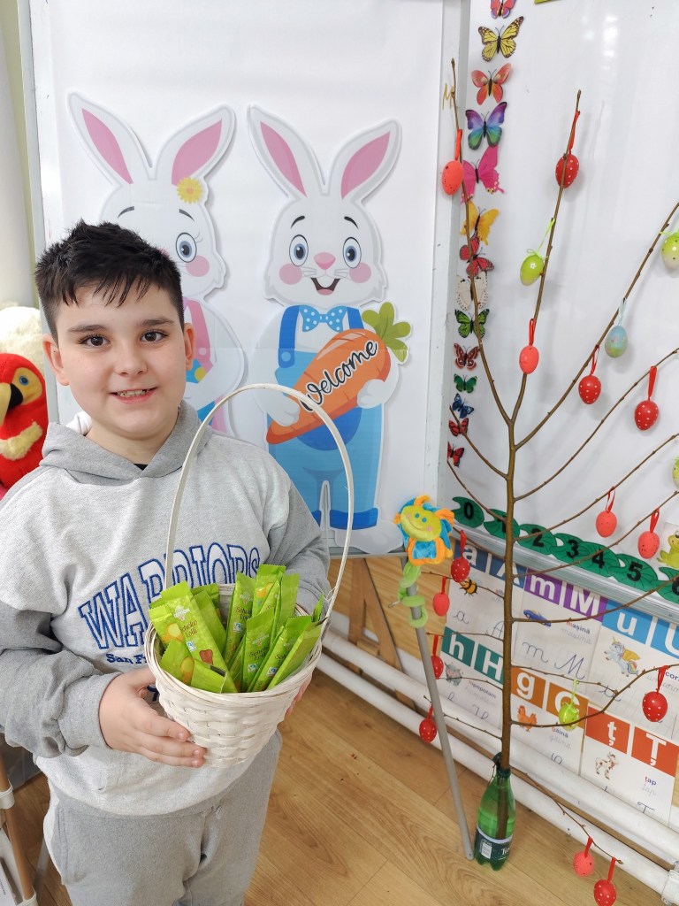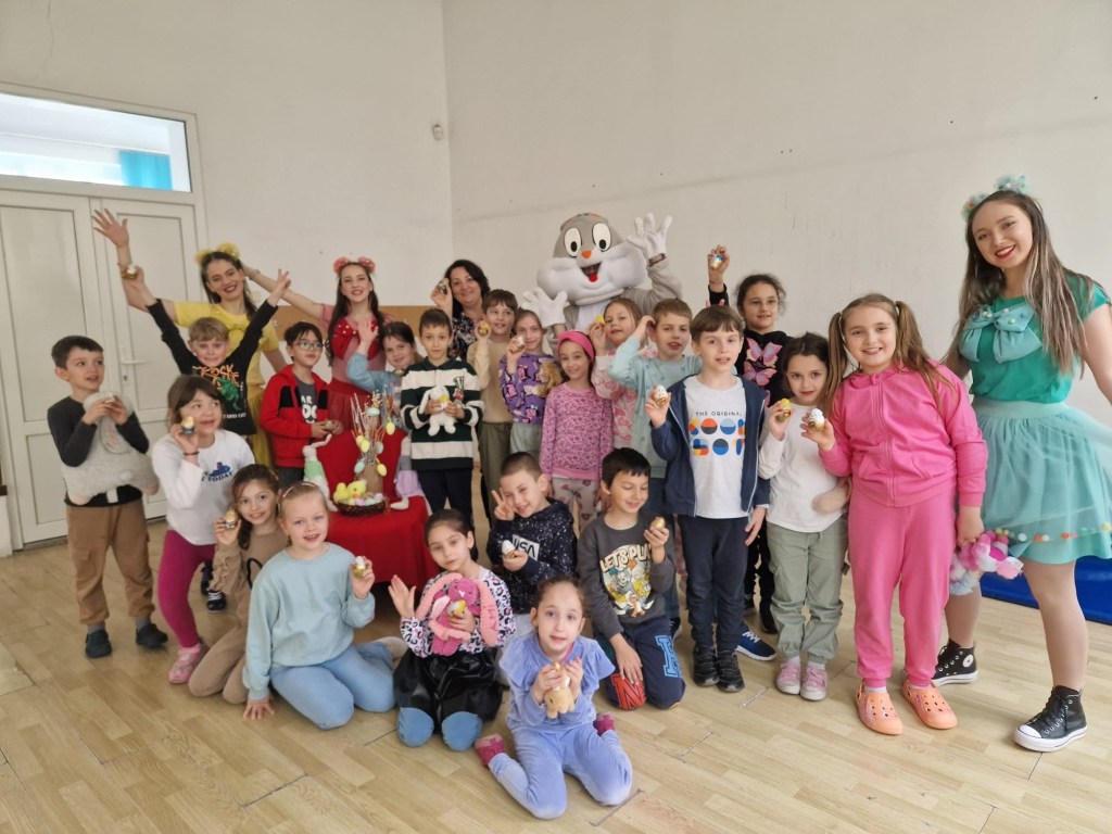 - sceneta Iepurașului care a furat ouăle vopsite din coș a fost un moment artistic interactiv, plin de amuzament, plăcut de toți copiii, educativ în care dansul, muzica și surprizele au reușit 100% să-i țină conectati cu bucurie și distracție din plin, mai bine de o oră pe elevii clasei I B (că doar asta le place cel mai mult)
